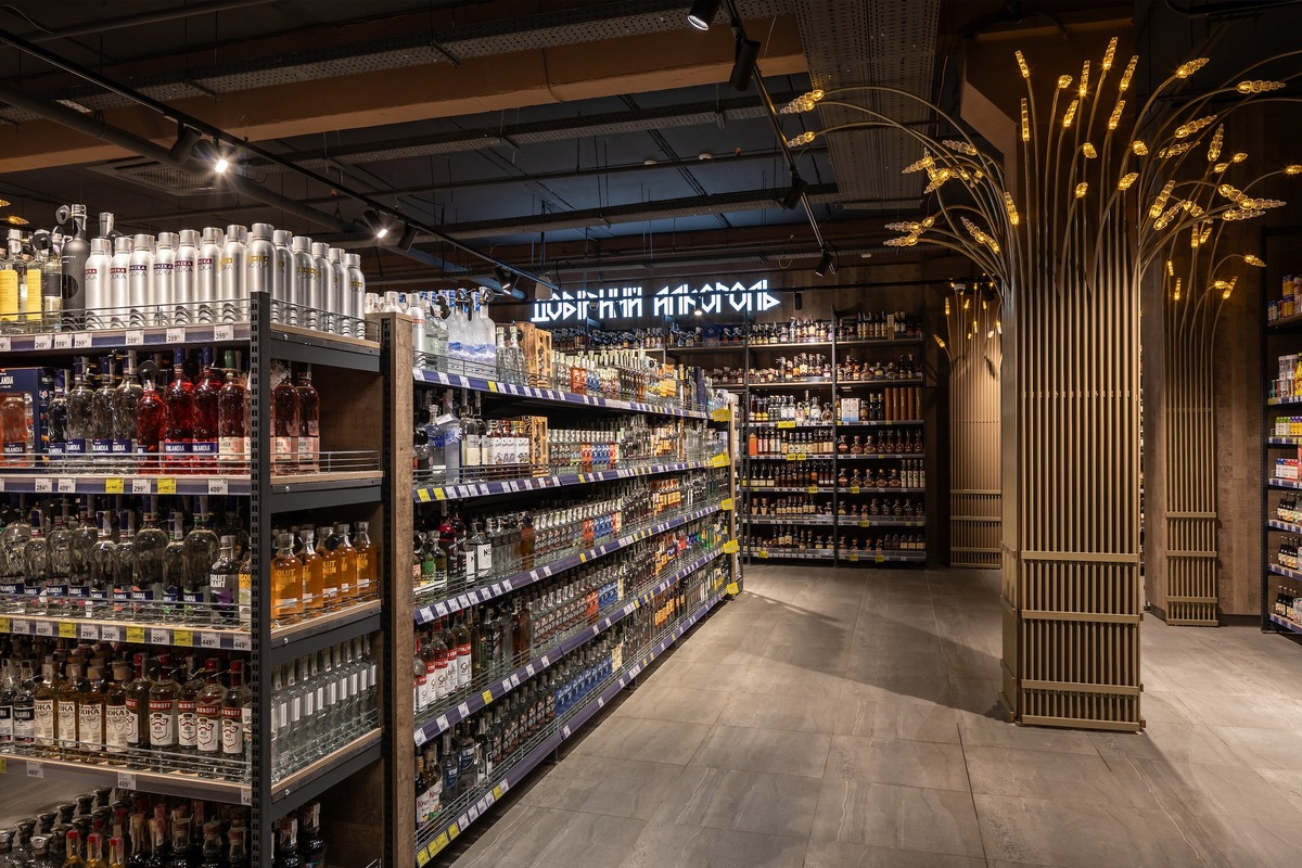 Посреди овощного отдела расположена инсталляция дерева жизни, символизирующая в нашей культуре единство трех миров – небесного, земного и потустороннего. Кассовые лайтбоксы выполнены в форме тотемов Велеса, в дизайне торгового зала много старинных языческих символов и элементов быта.