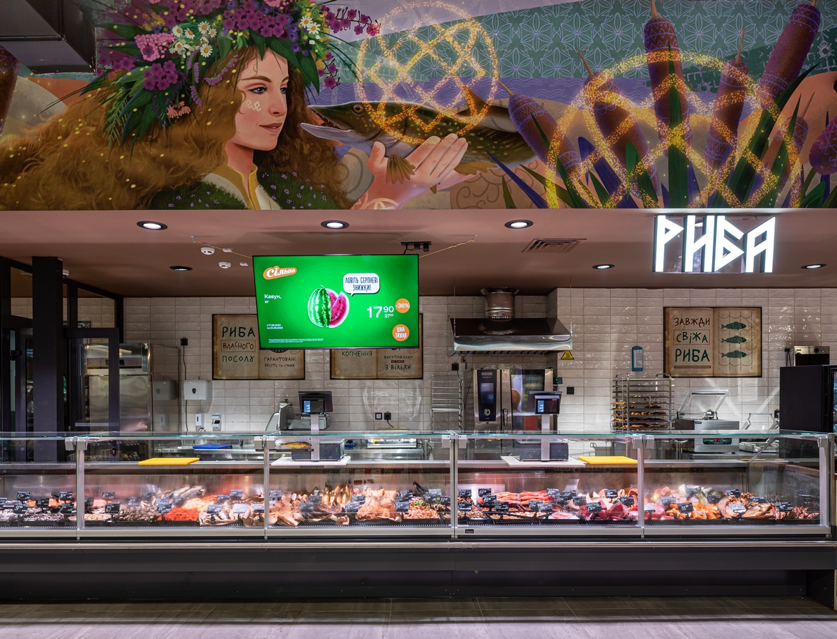В новом Сільпо для посетителей созданы специальные атмосферные зоны: выпечка от “Крафтяров” с тотемным гречишным багетом, лаваши на тандыре и другая душистая выпечка, порождаемая стихией огня, потому что хлеб выпекают на дровах. Также здесь есть рыба собственного производства, блюда из кулинарии, отборные фермерские товары из “Лавки традиций”.