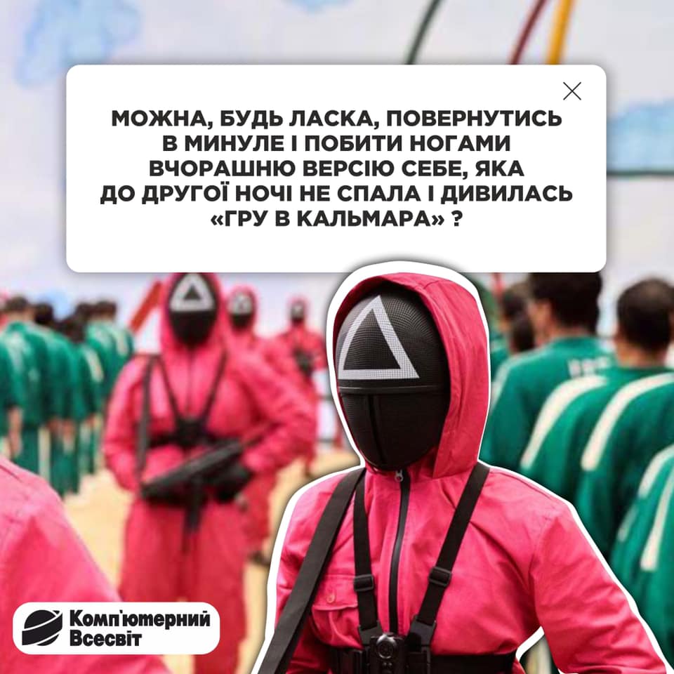 В сети Компьютерных Всесвит прямо признались, что залипли на сериал. Такое себе упоминание об “Игре в кальмара” ради упоминания без попыток использовать сериал для ситуативного маркетинга.
