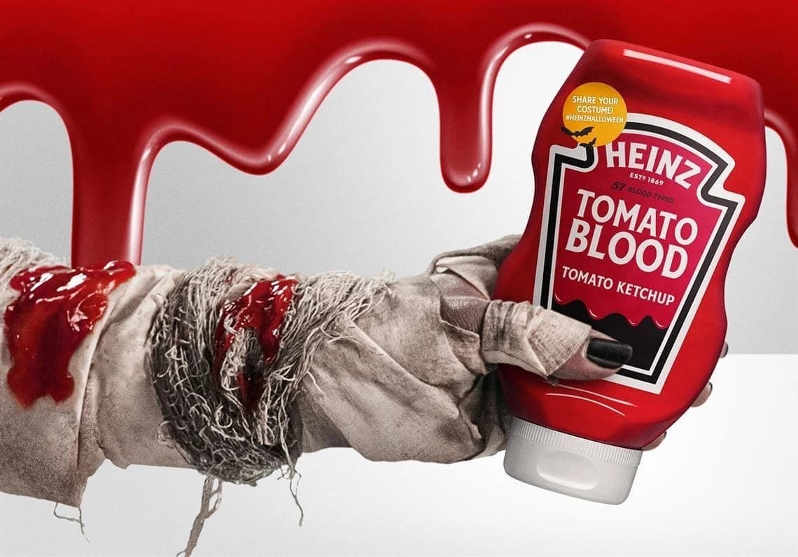 Бренд Heinz для празднования Хэллоуина выпустил лимитированный тираж кетчупа Tomato Blood Ketchup и в своей новой рекламной кампании агитирует покупателей использовать его как искусственную кровь. Сезонное предложение также включает в себя различные комплекты костюмов и маски. Их бренд продвигает через микро-сайт электронной коммерции HeinzHalloween.com.