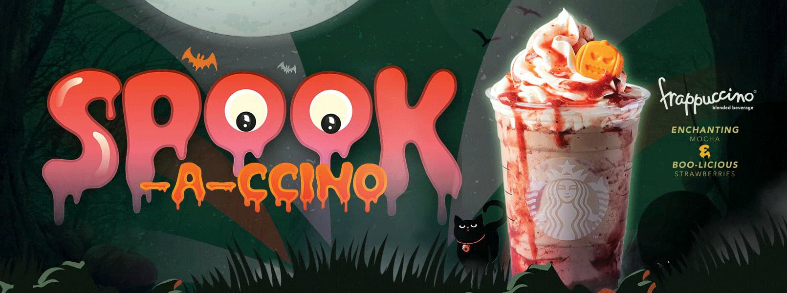 Особенно кровавый напиток в этом году предлагает сеть кофеен Starbucks – для тех, кто жаждет жутко выглядеть в этот день даже с десертом в руках. Название напитка можно перевести как “пугатт-а-чино”.