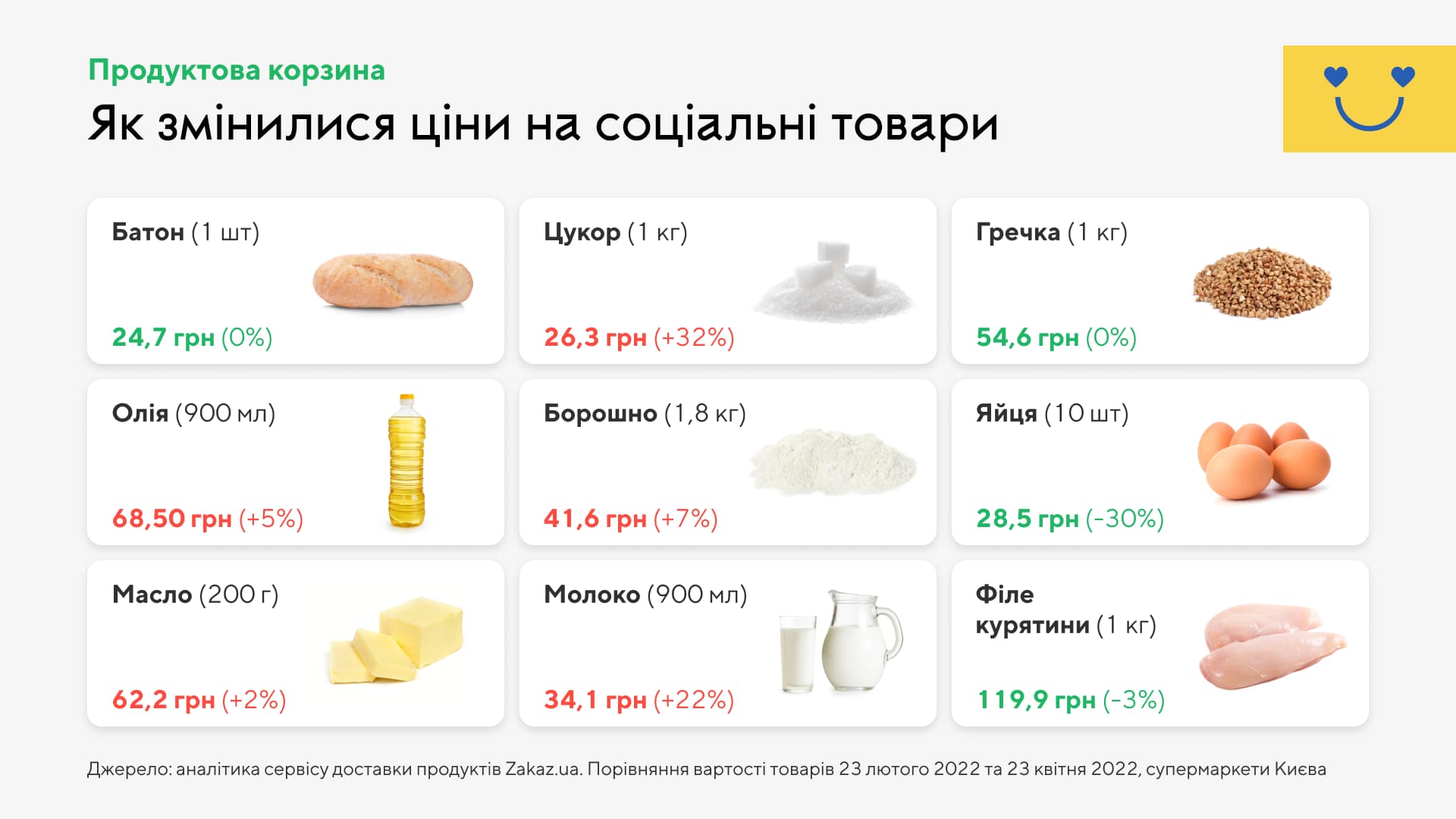 Как изменились цены на продукты в супермаркетах Киева во время войны – инфографика Zakaz.ua