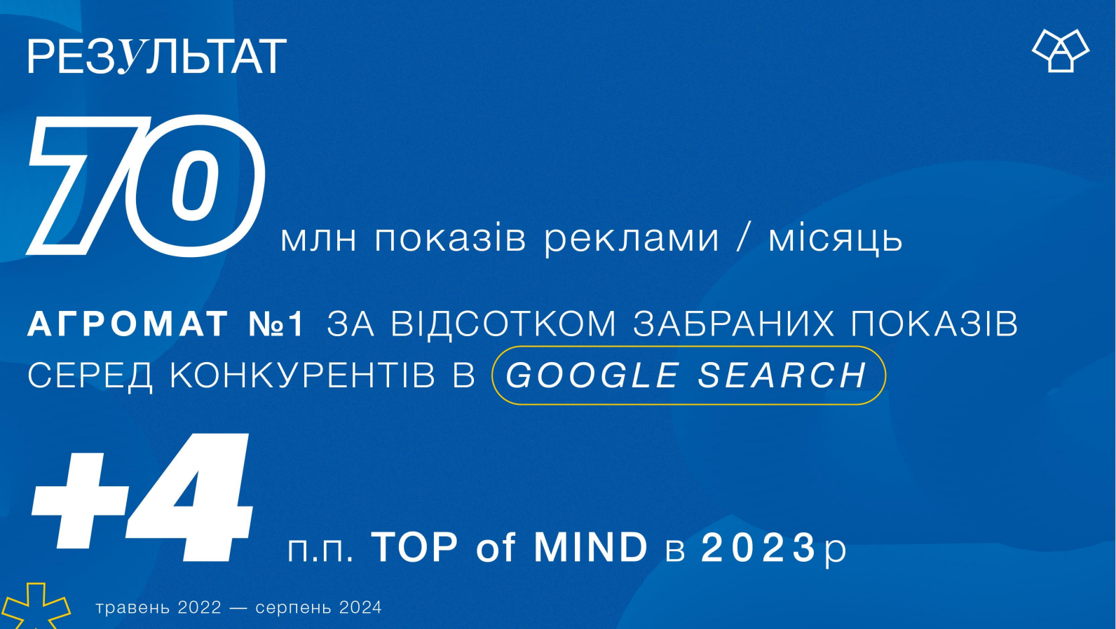 Для качественной реализации любой стратегии важно понимать, кто ваш клиент – чем живет, какое поведение, как принимаются решения, анализировать точки соприкосновения на полном пути клиента и т.д. В сети Агромат 49% – конечный потребитель, 36% – архитектор и дизайнер и 15% – это мастер. Мы очень усердно изучаем своего клиента. Поэтому, имея стратегию, понимая своего потребителя и тенденции на украинском рынке, в 2023 году было 70-80 млн показов рекламы в месяц. Также с мая 2022 запустили поисковые кампании. И сейчас держим лидерство в поисковике в тех городах, где присутствуем. То есть в выдаче мы обязательно будем в топ-3.