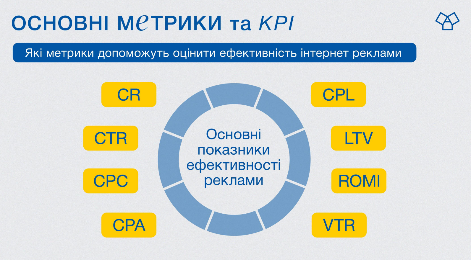 Далее на картинке метрики, помогающие нам в сети оценить эффективность интернет-рекламы: