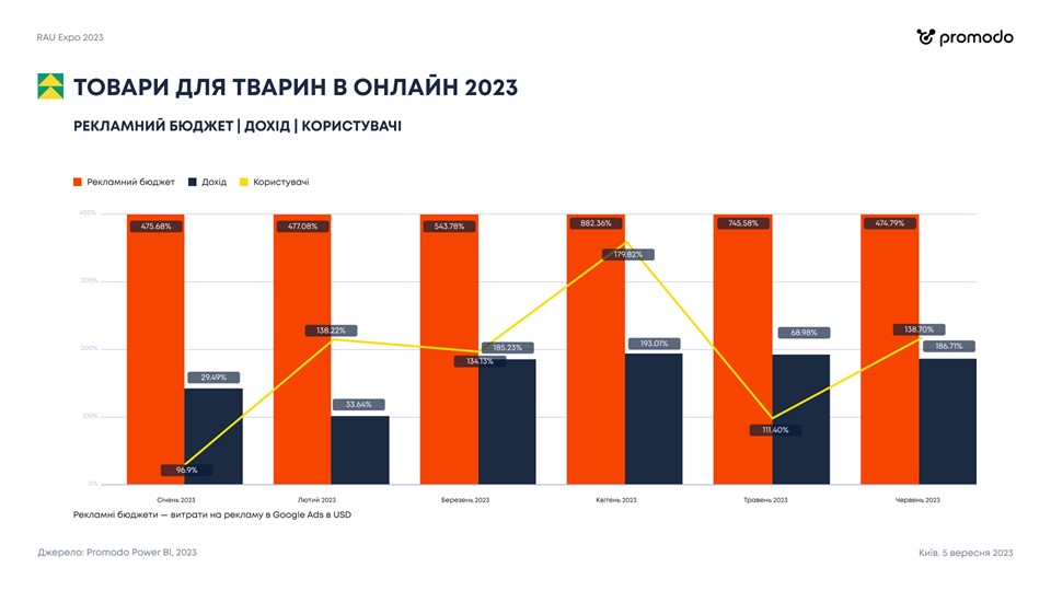 Отрасль торговли товарами для животных стала прорывной еще в прошлом году, а в этом году демонстрирует феноменальные показатели. Так, размер рекламных бюджетов первой половины 2023 года увеличился на 400-900% по сравнению с довоенными показателями. Что свидетельствует о высокой конкуренции между множеством игроков. Компании интенсивно вкладываются в рекламу бренда, чтобы выделиться и удержать свою долю рынка и по возможности – увеличить ее.