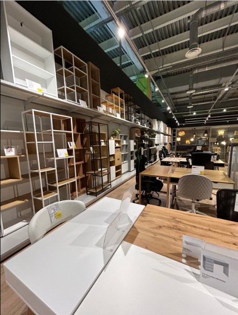 Магазин JYSK был обновлен до современной концепции сети 3.0. Она предусматривает более удобный и привлекательный интерьер, более комфортную выкладку и демонстрацию товаров. Торговая площадь магазина и его склада остались без изменений, они составляют 1020 кв. м и 157 кв. м соответственно. Однако объем склада увеличен благодаря повышению высоты оборудования.