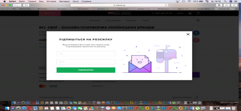 Один из лучших способов сделать это – в самом начале попросить у посетителей сайта их электронный адрес. Например, как это делает интернет-магазин украинских брендов Всi. Свої.
