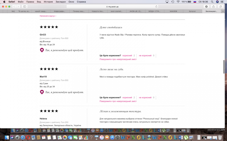 Хороший пример – компания Avon, где можно увидеть отзывы покупателей, которые уже приобрели продукт.