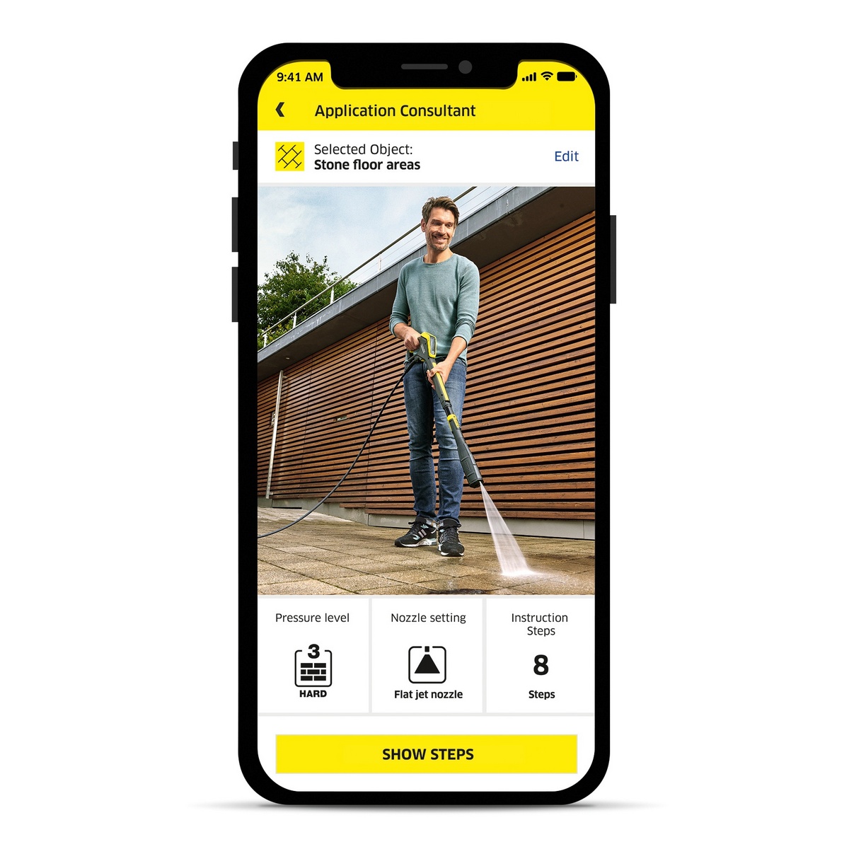 Во флагманских моделях, таких как K5 Smart Control и K7 Premium Smart Control, Bluetooth обеспечивает бесперебойное соединение мойки с приложением, предоставляющим пользователю совершенно новые функции. Например, после выбора объекта для чистки приложение автоматически выберет соответствующую программу очистки, учитывая имеющиеся аксессуары.
