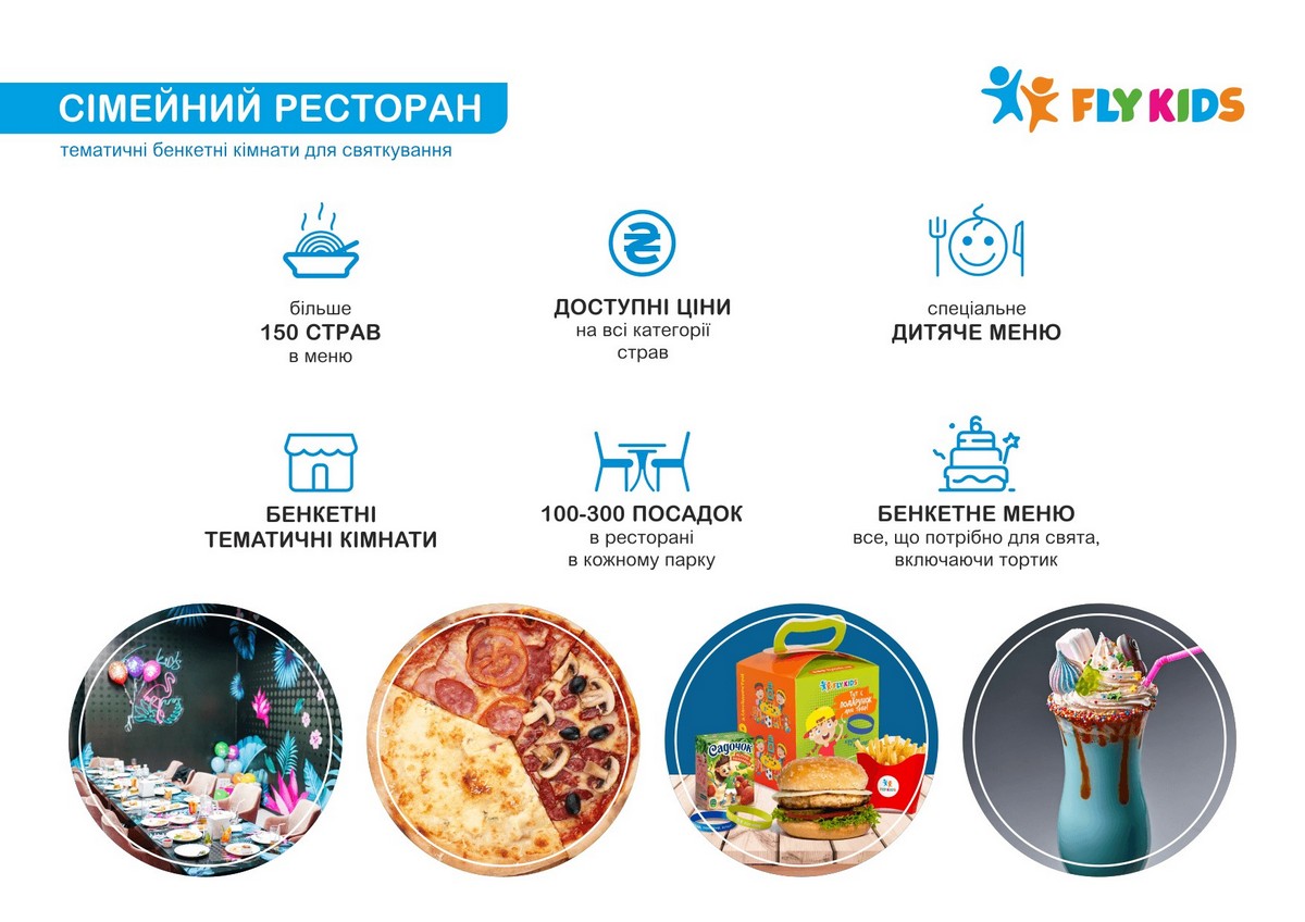Fly Kids – лидер рынка семейно-развлекательных комплексов в Украине с самым большим числом семейно-развлекательных комплексов. Сеть представлена в 14 городах Украины. В детских заведениях Fly Kids один билет на все развлечения, уникальные и безопасные аттракционы, зрелищные анимации и шоу-программы, семейный ресторан и банкетные комнаты, возможность организации детских праздников под ключ и другие развлечения. В колонке для RAU генеральный директор сети Fly Kids Екатерина Железная рассказала о ресторанной составляющей этого бизнеса.