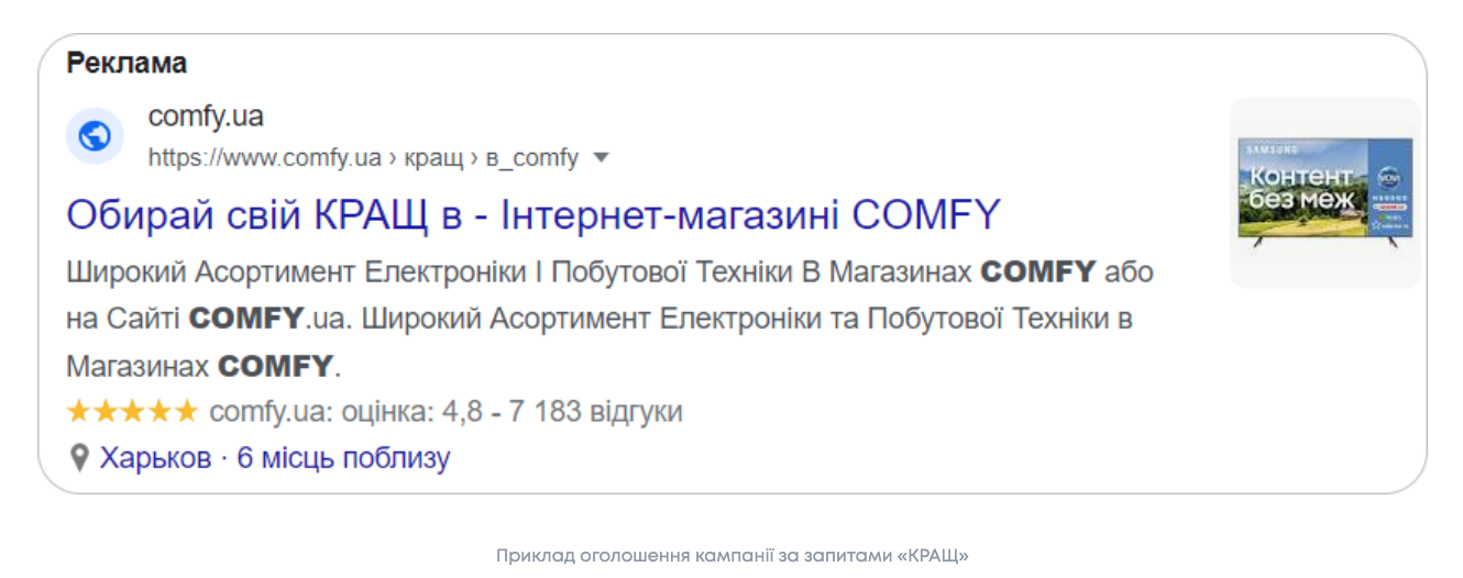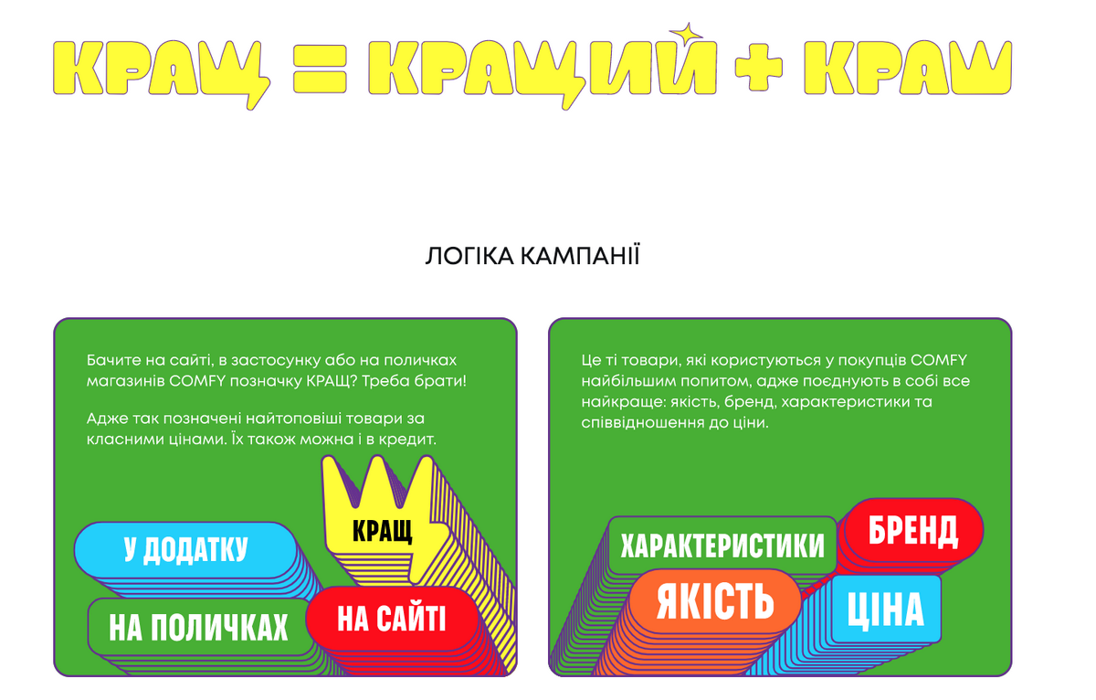 Некоторые товары не нуждаются в дополнительной рекламе, потому что они давно ассоциируются с определенной категорией и имеют много поклонников. Однако есть и такие, которые действительно лучшие за свои деньги, но об этом клиентам нужно рассказать. Именно такую задачу решала рекламная кампания «КРАЩ — топ за свої гроші» от Comfy. Команда Promodo отвечала за ее стратегию продвижения в Google и Facebook.