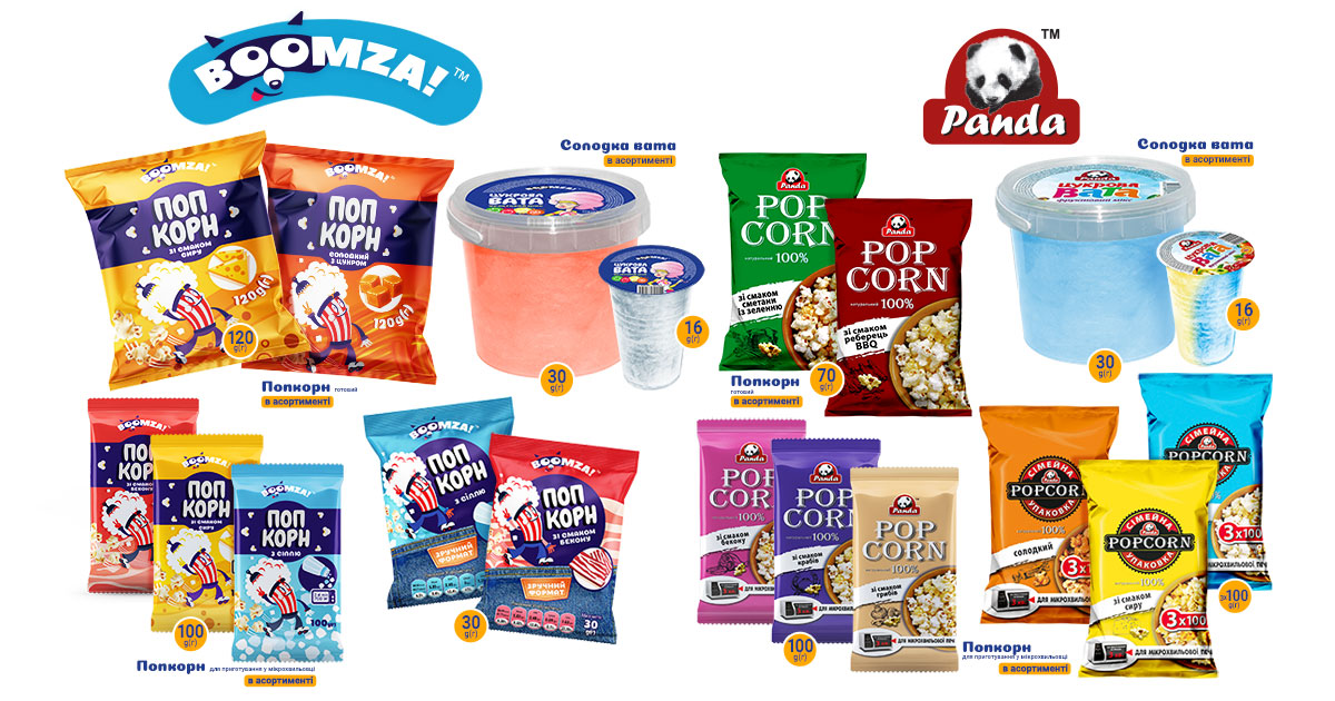 Сейчас попкорн от Vizard представлен под двумя торговыми марками – Panda і Boomza.