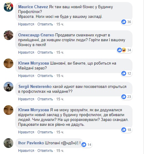 В то же время, на бренд обрушился шквал критики в соцсетях, в частности, на официальной странице в Facebook. Рейтинг KFC в Доме профсоюзов быстро опустили до единицы, в итоге он закрыл возможность оставлять отзывы.