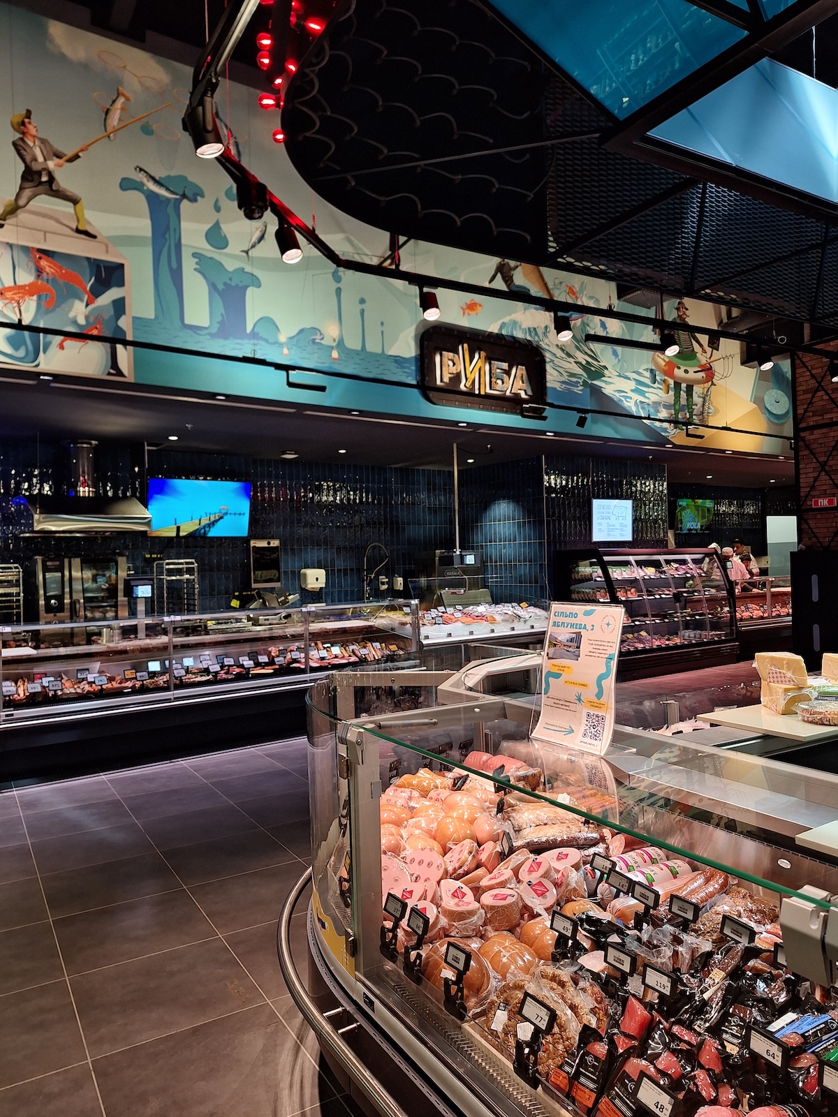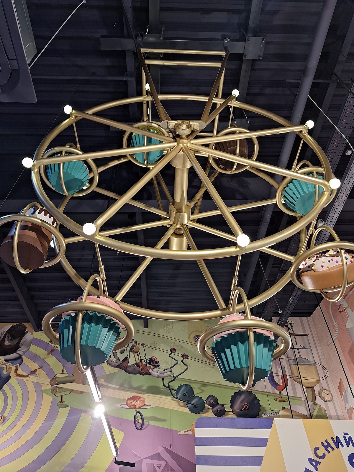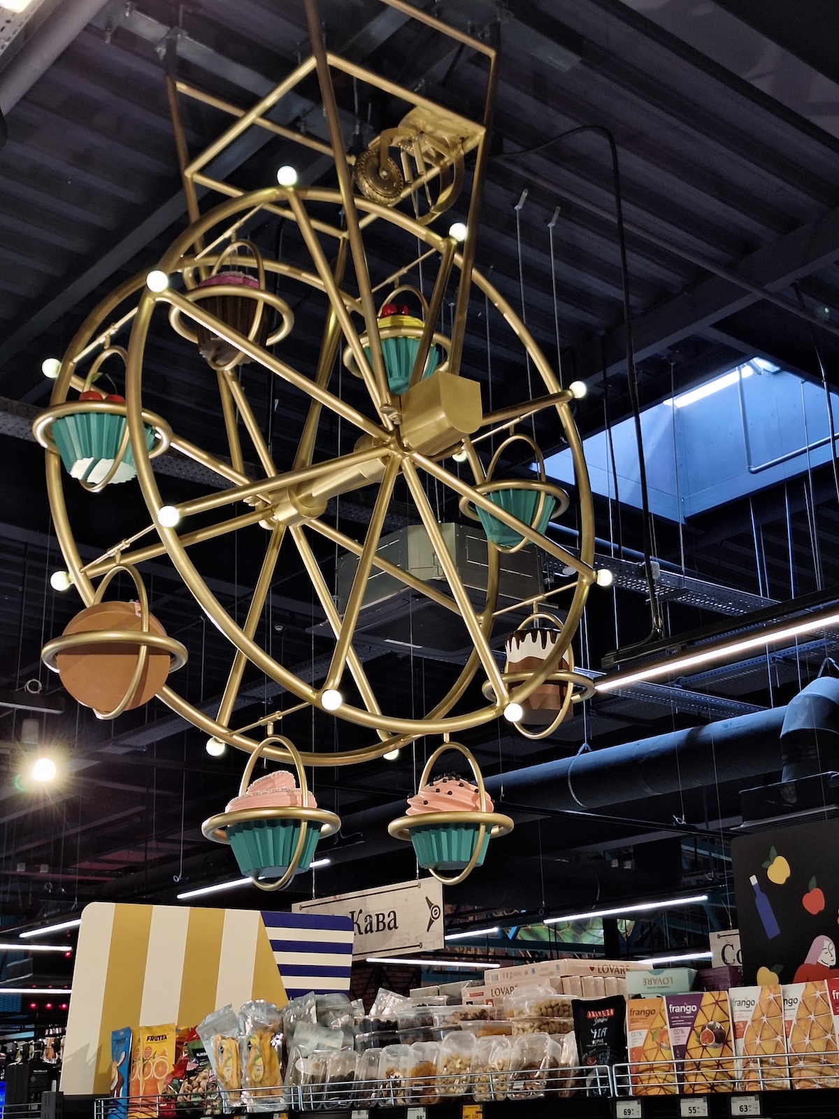 Гостей магазина встречает Изобретатель, парящий под потолком на велопуле в виде арбуза. В каждом отделе можно найти его творения: в кондитерской – карусель со сладостями, в отделе алкоголя – коркотяг в виде самолета, кружащегося над полками. А еще здесь можно увидеть кран, из которого вместо воды капают груши, и фотоаппарат Чиз, выдающий вместо снимков нежный сыр.