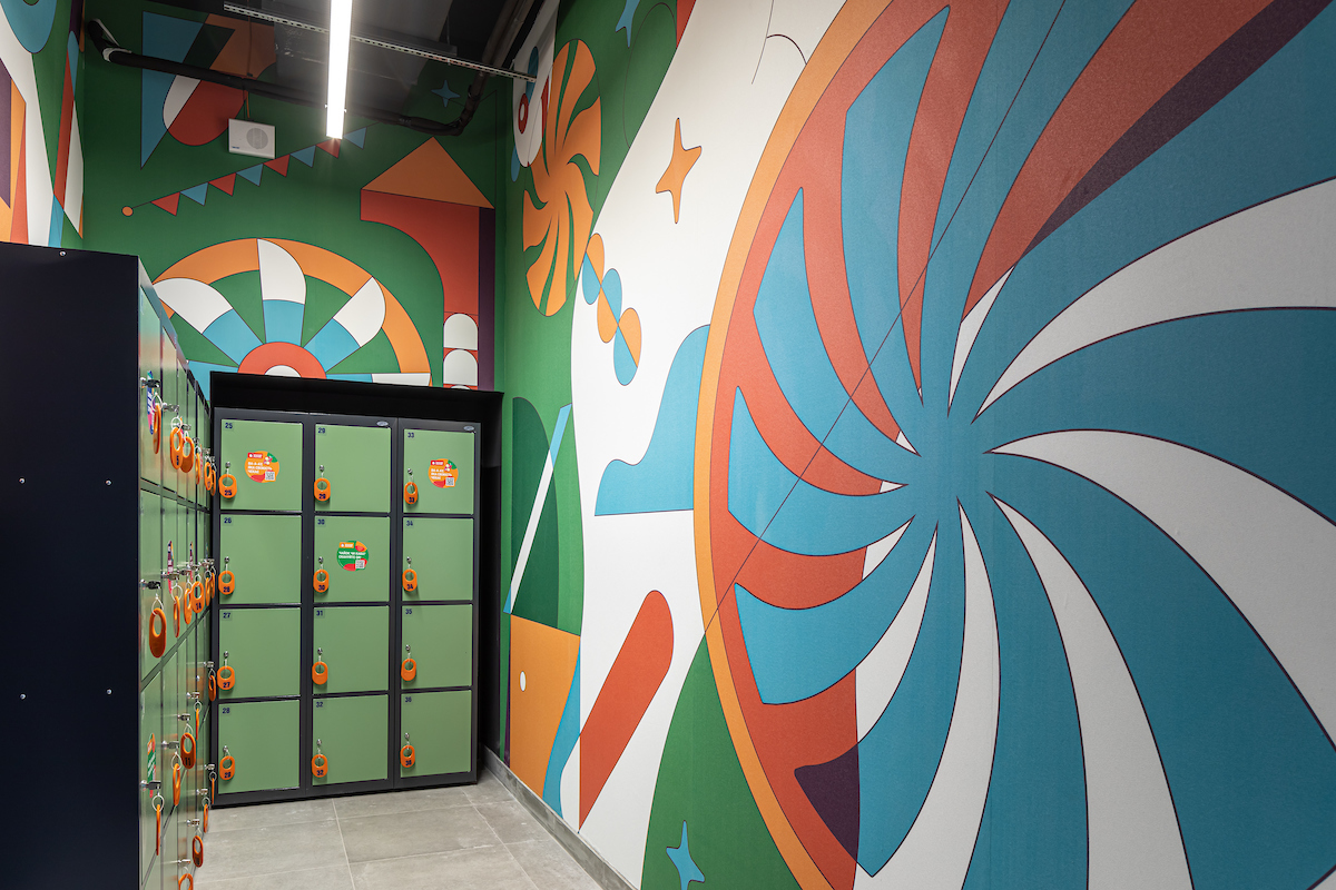 Площадь супермаркета составляет 951 кв. м. Во избежание очередей и удобства посетителей здесь работает две экспресс-кассы, две основные кассы, пять касс самообслуживания и одна касса-кофебутик.