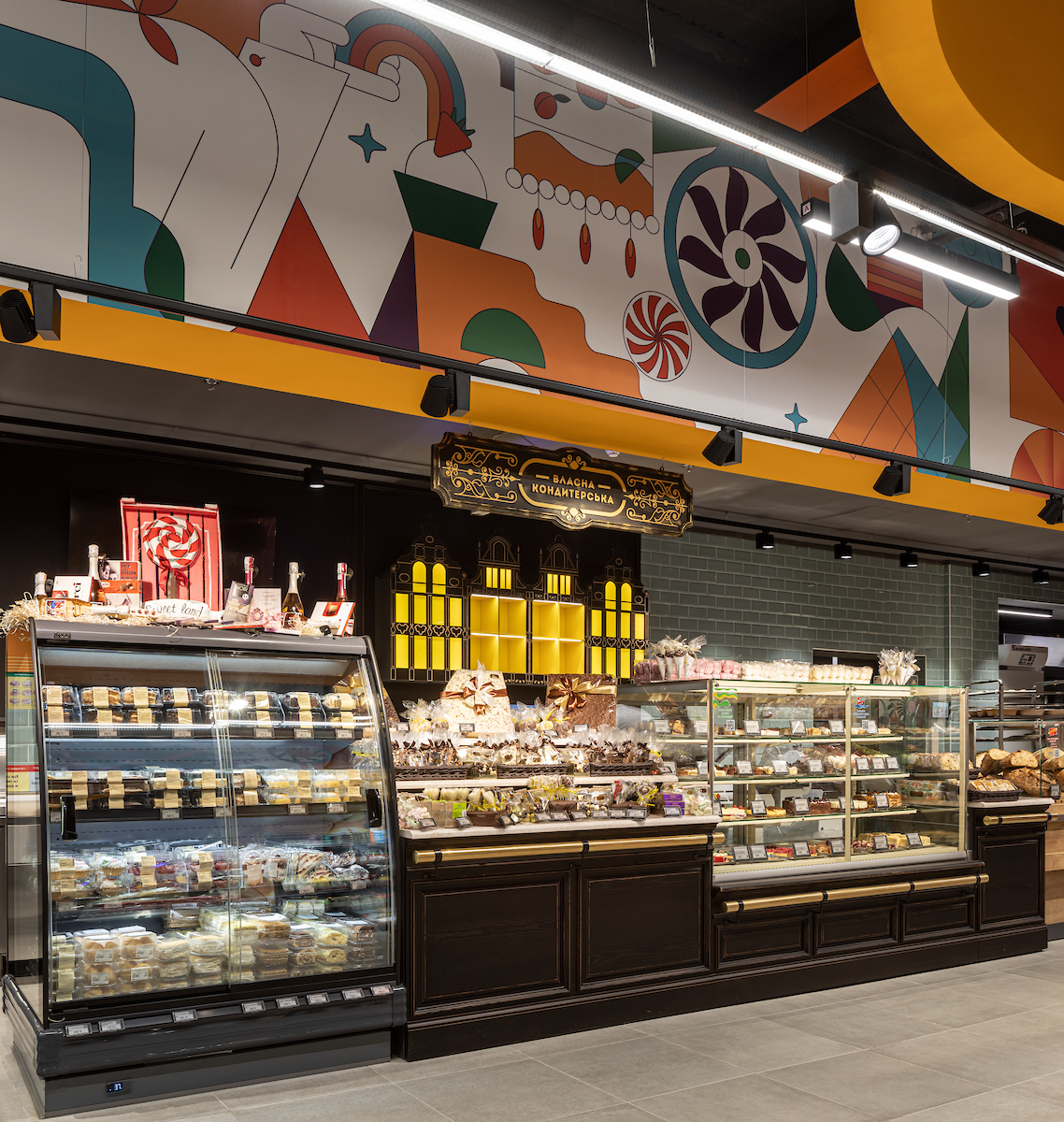 Калейдоскоп барв різноманітних вітряків можна побачити і у відділах власної пекарні та кондитерської, де продаються різноманітні солодощі та кондитерські вироби.
