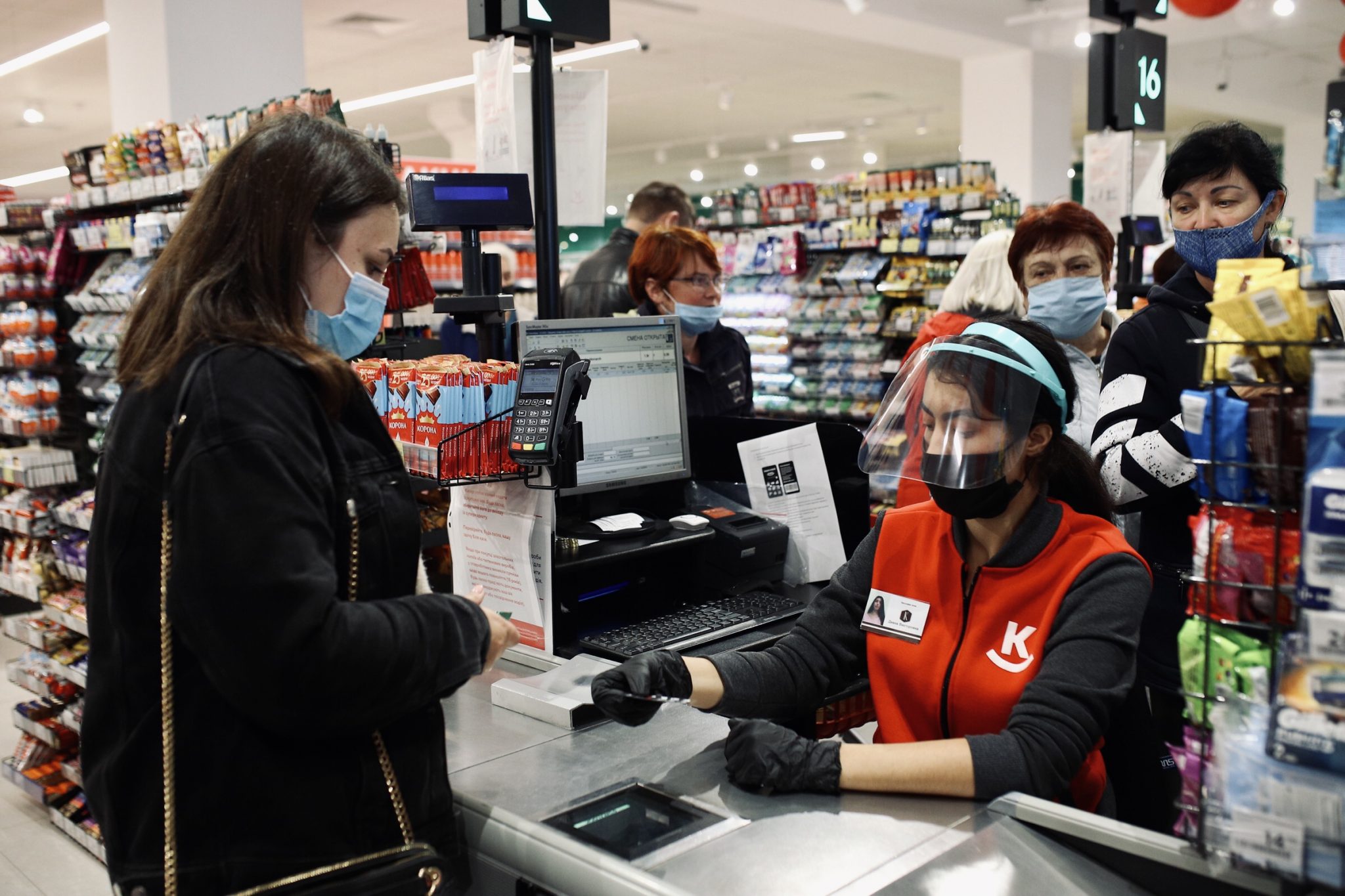 Помимо обычных касс, в супермаркете установили терминалы самообслуживания. При этом особое внимание ритейлер уделил соблюдению карантинных мер безопасности. В частности, весь персонал в торговом зале и на кассах обеспечен средствами индивидуальной защиты, перед каждой кассой есть разметка для соблюдения дистанции, а при входе в супермаркет, возле камеры хранения и в кафетерии, установлены емкости с антисептиками и одноразовыми перчатками.