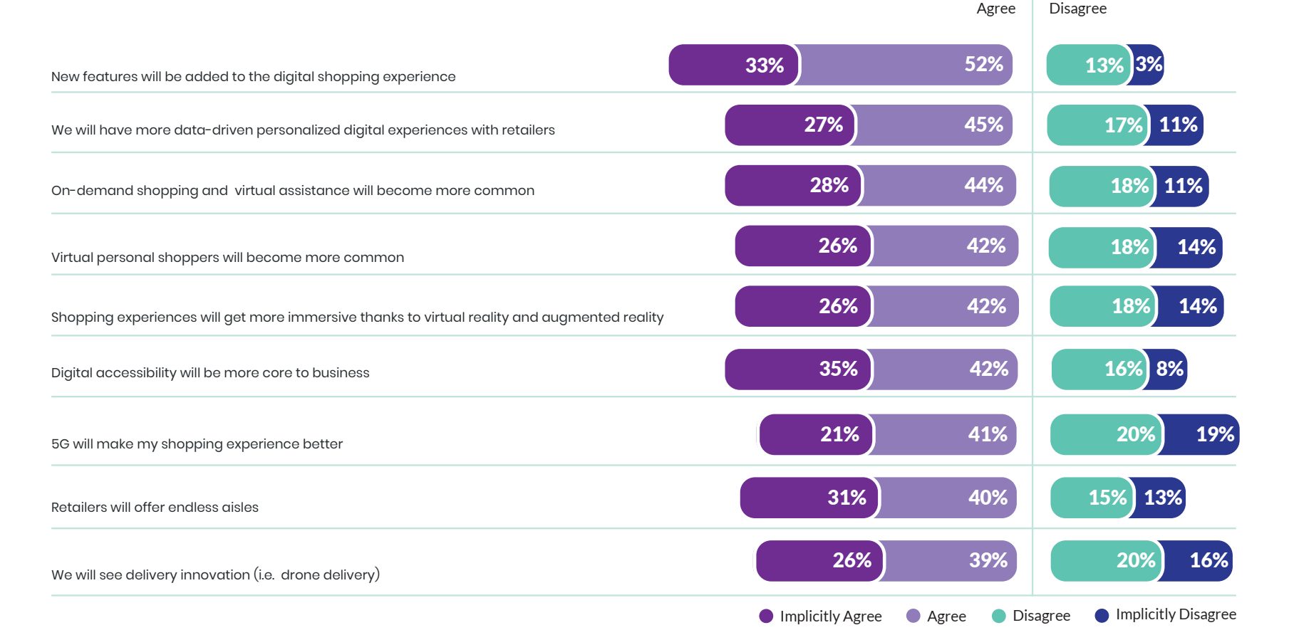 Ожидания потребителей от ритейла и их покупательский опыт резко изменились во время пандемии. Согласно последнему исследованию потребителей консалтинговой компании Appnovation «Цифровые инновации для экономики впечатлений: розничная торговля», более 70% потребителей в Северной Америке согласны с тем, что цифровые технологии сделали их покупки более удобными. Однако только 20% оценивает услуги, предлагаемые ритейлерами, как «отличные». Это говорит о том, что большинство людей считают, что у торговых сетей есть возможность улучшить качество обслуживания клиентов (CX), особенно в том, что касается электронной коммерции.