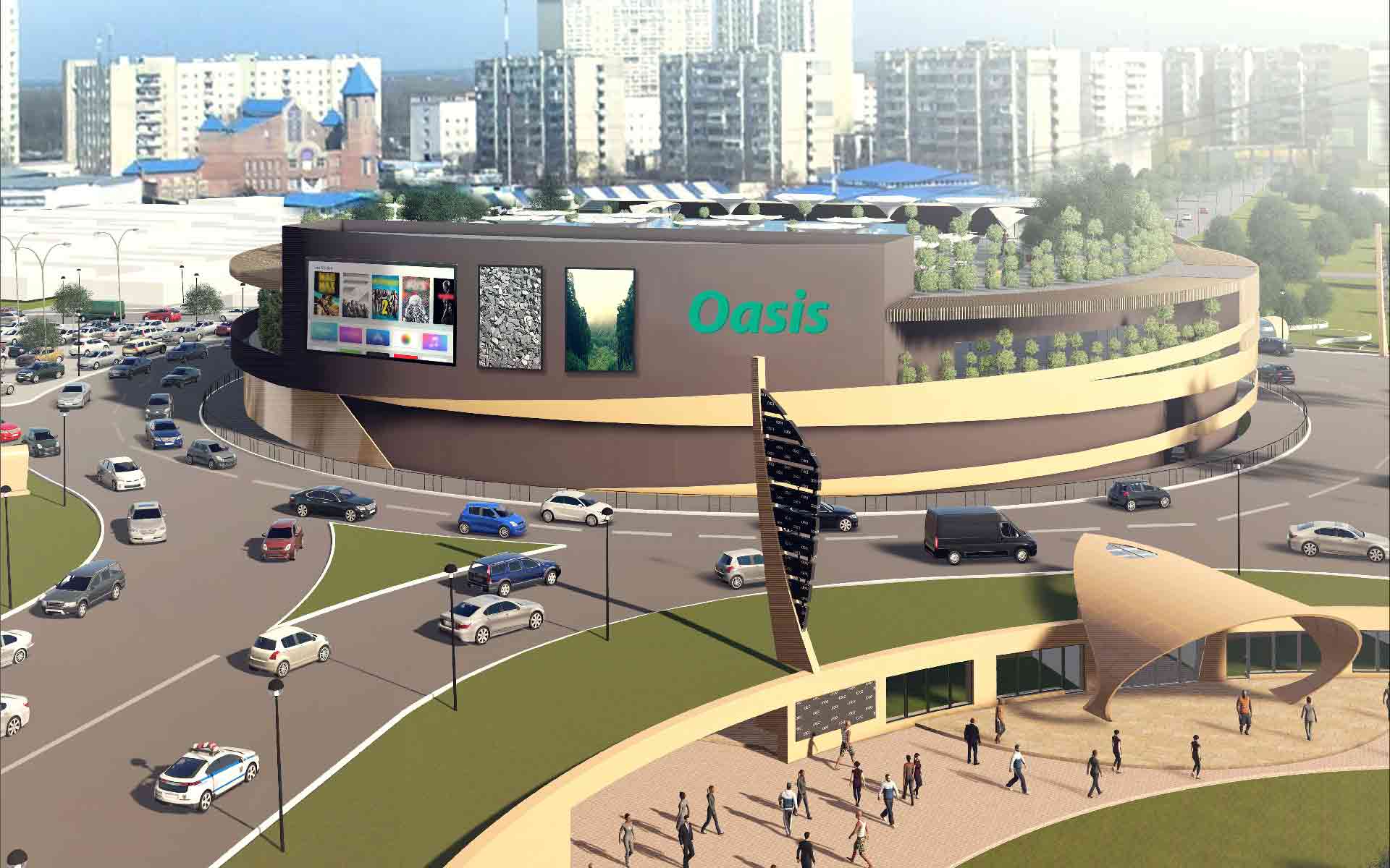 Скандальный киевский трехэтажный ТРЦ Oasis, размещенный на месте кольца над станцией метро “Героев Днепра” начали строить в 2016 году и планировали запустить в средине декабря 2018 года. Однако позднее девелопер перенес ввод в эксплуатацию объекта на конец января 2019 года. Генеральный подрядчик – ООО “Риола-Модуль Лтд”.