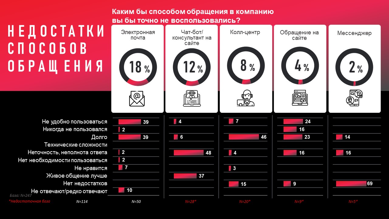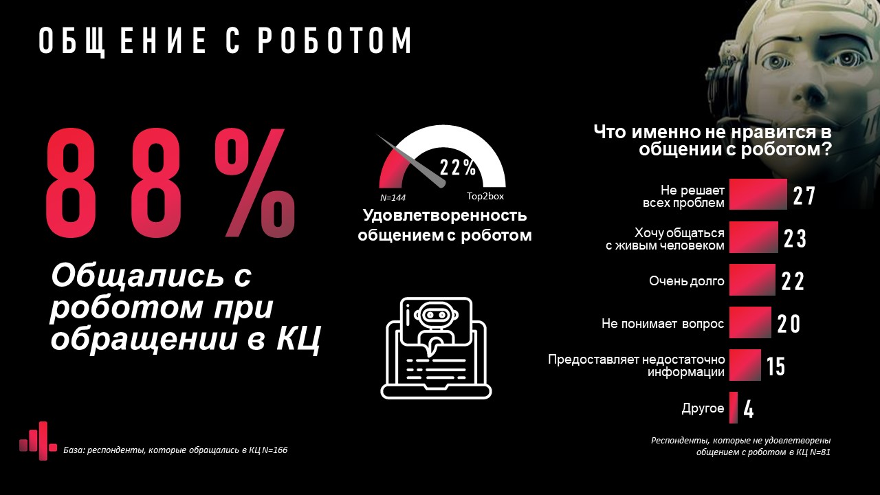 Подобные проблемы должны были решать чат-боты, которые сегодня также есть у многих бизнесов. Они отвечают молниеносно. Но и они опрошенным не угодили. Главным недостатком чат-ботов является неточность или неполнота ответа.