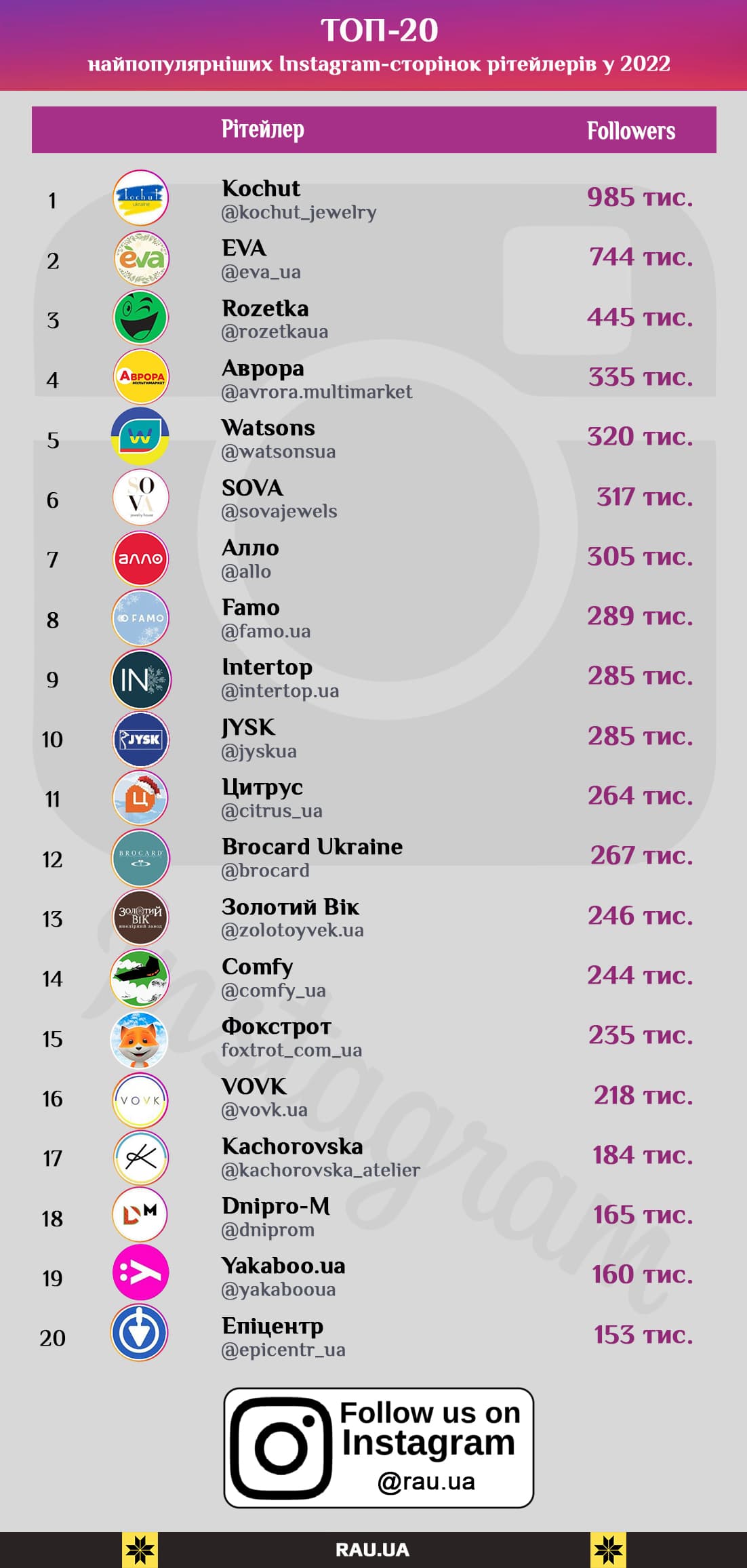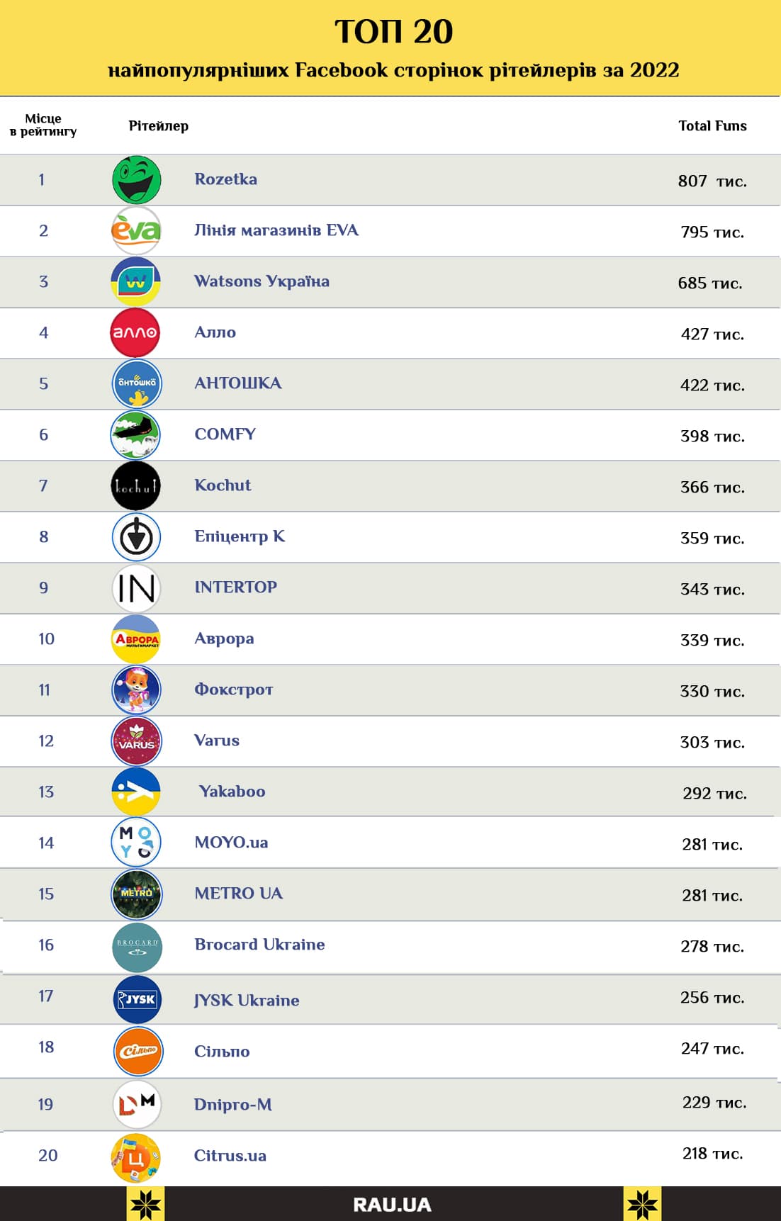 Короли соцсетей: топ-20 украинских ритейлеров в Facebook и Instagram за 2022 год