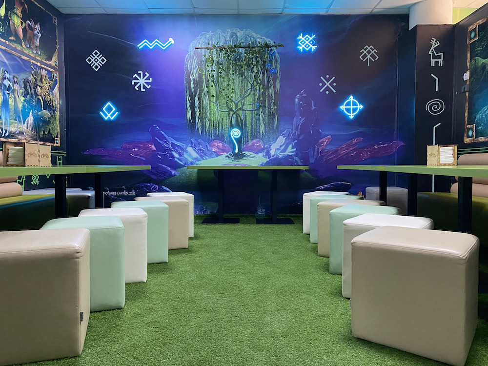 Впервые в Украине яркие герои и лесные путешествия стали еще ближе к детям в тематической комнате “Мавка”. Неповторимый дизайн переносит детей в мир к любимым персонажам: Мавки и Лукаша, Лягушонка Квуся и Шумника Гука, и множества других лесных созданий.