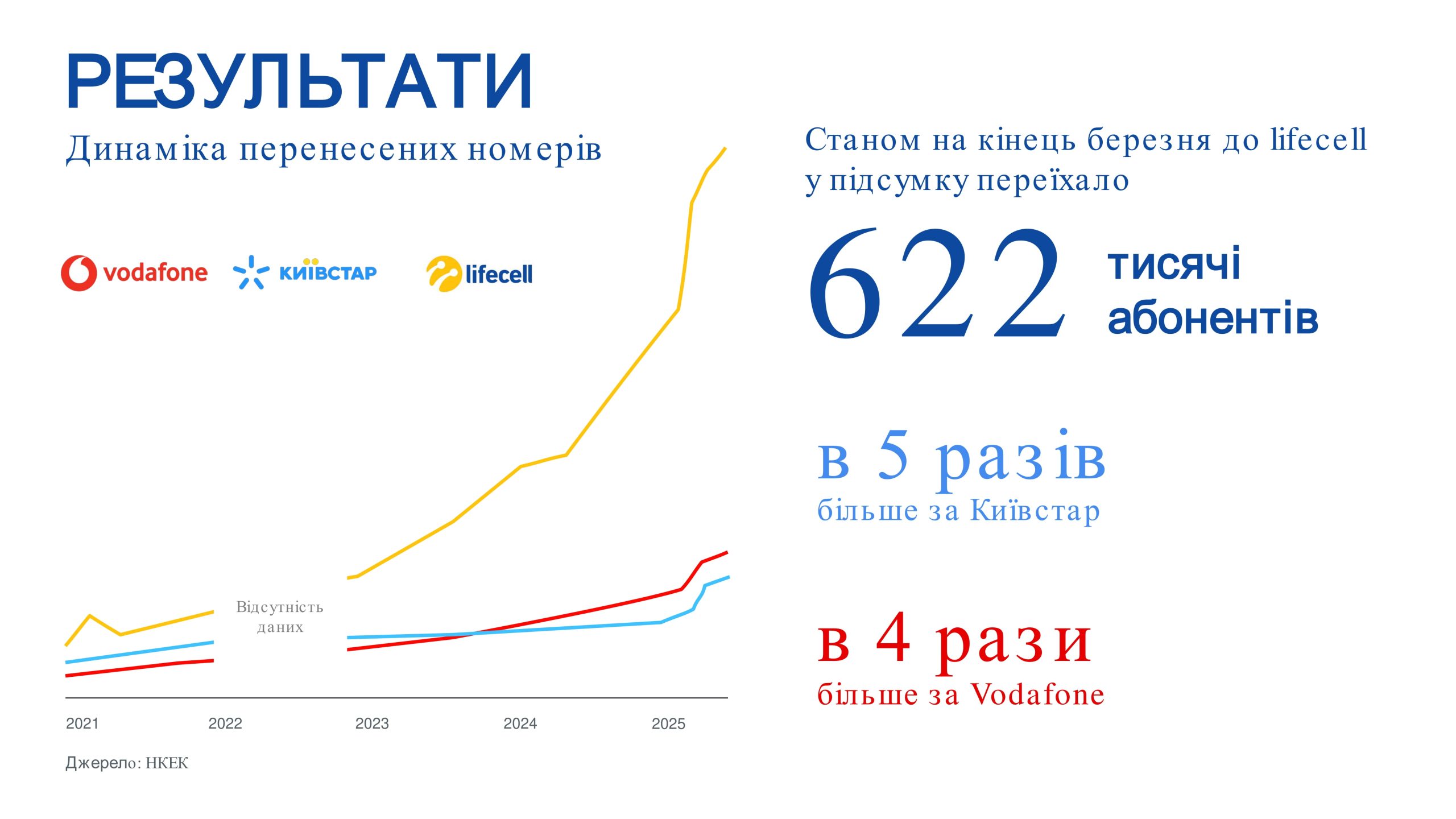 И по состоянию на конец марта в lifecell переехало 622 000 абонементов, из них 19 000 – именно в декабре 2024 и январе 2025-го.