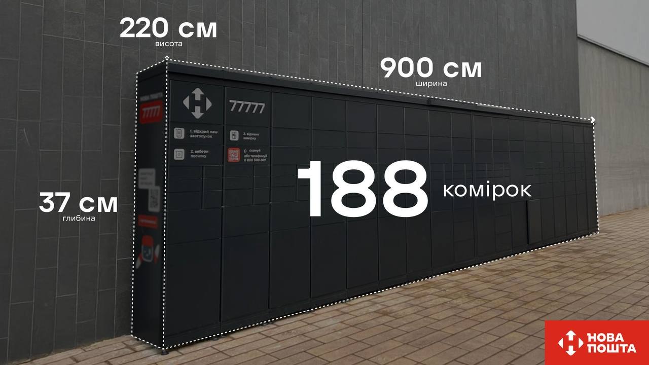 Нова пошта установила в Киеве свой самый большой почтомат в сети – на 188 ячеек. Почтомат №77777 установлен по адресу Днепровская набережная, 18 (ЖК “Севен”) вблизи станции метро Осокорки. Он работает круглосуточно, а его габариты – 900 см в ширину, 220 см в высоту и 37 см в глубину. Уже в первый день работы почтомата было отправлено две посылки и ожидалось получение 11 отправлений. Нова пошта планирует устанавливать еще большие почтоматы — до 360 ячеек. В настоящее время рассматриваются новые локации в больших жилых комплексах Киева и других городах.