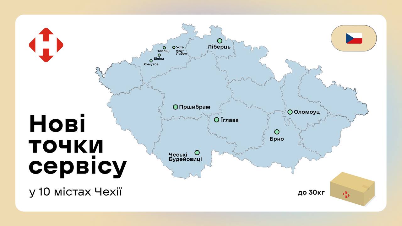 Согласно сообщению компании, новые точки сервиса заработали в Йиглаве, Оломоуце, Чешских Будейовицах, Брно, Пршибраме, Либерце, Билине, Усти-над-Лабем, Теплице и Хомутове. Они расположены в заведениях украинского бизнеса, таких как магазины украинских товаров, сервисные центры, гостиницы, ателье и т.д. В новых пунктах можно получить/отправить оплаченную посылку до 30 кг и стоимостью до 8500 грн (5000 крон). Но пока оформление отправки и оплаты осуществляется только онлайн – через мобильное приложение или сайт. Весной планируется открыть еще семь мини-отделений в крупнейших городах Чехии. Пока сеть Нова пошта в Чехии включает восемь собственных отделений в Праге, Брно, Пльзене, Либерце, Остраве и Пардубице, а также 1300 партнерских почтоматов Alza Box и 1400 партнерских пунктов выдачи GLS Parcel Shop. Клиенты также могут воспользоваться курьерской доставкой.