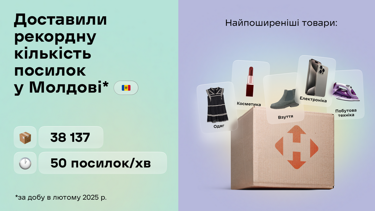 Нова пошта в Молдове установила рекорд благодаря быстрой доставке из крупнейших интернет-магазинов мира – например, из iHerb, Makeup, Zapatos, Temu, Aliexpress и других. 28 февраля 2025 года компания обработала 38 137 посылок за сутки — это более 50 отправлений каждую минуту. В феврале 88% всех посылок поступило из зарубежных маркетплейсов. Самые популярные товары среди молдавских покупателей – одежда, обувь, косметика, электроника и бытовая техника. В Молдове работают 61 пункт выдачи, 260 почтоматов и 31 отделение Нова пошта. Напомним, в прошлом году накануне праздников компания также устанавливала рекорд по количеству отправлений. 20 декабря 2024 года Нова пошта в Молдове обработала 34 476 посылок в сутки.
