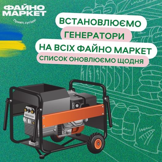 Такие города, как Кропивницкий и Черкассы, среди других ритейлеров, прежде всего, обеспечивает локальный ритейлер Файно Маркет. Сеть магазинов сообщает, что закупила партию генераторов, которые уже устанавливаются на всех маркетах сети. Уже сейчас список торговых точек “несокрушимости”, работающих без перебоев, свыше 50. С ним можно ознакомиться тут.