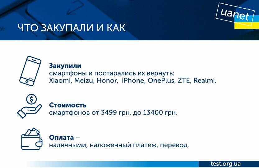 Во время «Черной пятницы» специалисты центра закупали технику, которая подлежит гарантийному обслуживанию (смартфоны), через заказ на сайте и услугу самовывоза (в тех случаях, когда такая услуга предоставлялась). При этом «Тест» проверял, как онлайн-ритейлеры придерживаются норм относительно выдачи фискальных чеков и законодательства по защите прав потребителей.