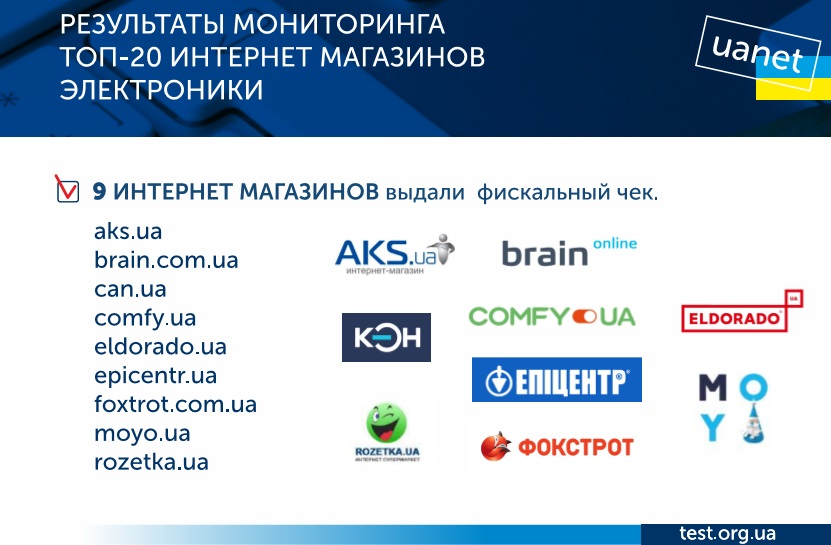 Также были зафиксированы и другие нарушения. В частности, четыре интернет-магазина указали на своем псевдофискальном чеке только название интернет-магазина, а еще по одному по платежным документам вообще не удалось идентифицировать ни название магазина-продавца, ни субъект предпринимательской деятельности.