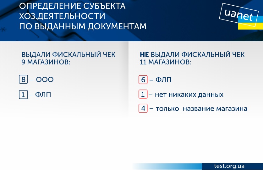 Как утверждают составители исследования, во время тестовых закупок только 9 магазинов выдали покупателям фискальные чеки, а обслуживание клиентов проводилось на высоком уровне. При этом 11 магазинов – не выдали такого чека.