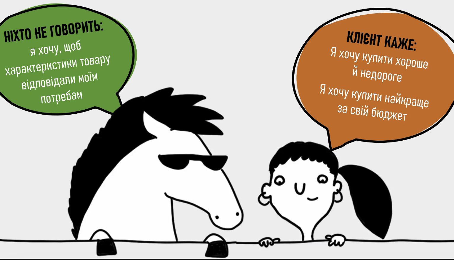 Из каждого подразделения мы нашли одного-двух заинтересованных, которые добавляют свою экспертизу и точку зрения, и все участники делают интервью с клиентами. Пока что мы только формулируем ключевые гипотезы, но чаще всего слышали от клиентов, что они хотят купить недорогой хороший продукт, что в переводе означает хороший для него и за приемлемые для него деньги. Понятно, что для каждого клиента – это свой товар.