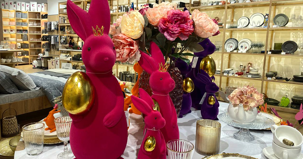 Особый акцент сделан на весенней и пасхальной коллекциях, включающих тематическую посуду, салфетки, декоративные фигурки и цветы премиум-класса.