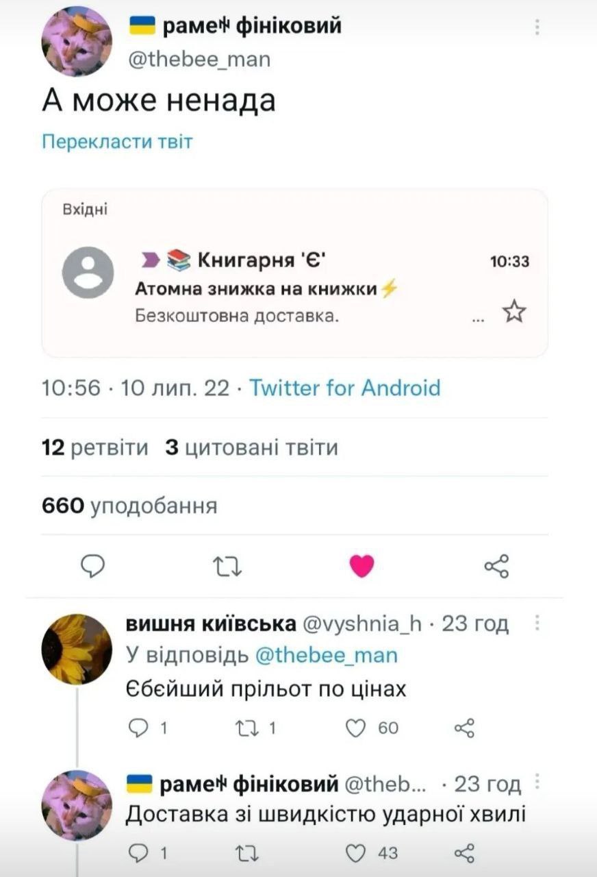 Когда украинцы насмехаются над темой ядерной войны – это одновременно и жутко, и иногда смешно. Сеть магазинов Книгарня Є решила также отметиться в теме и запустила акцию “атомная скидка на книги”. Самой интересной получилась реакция соцсетей на нее.