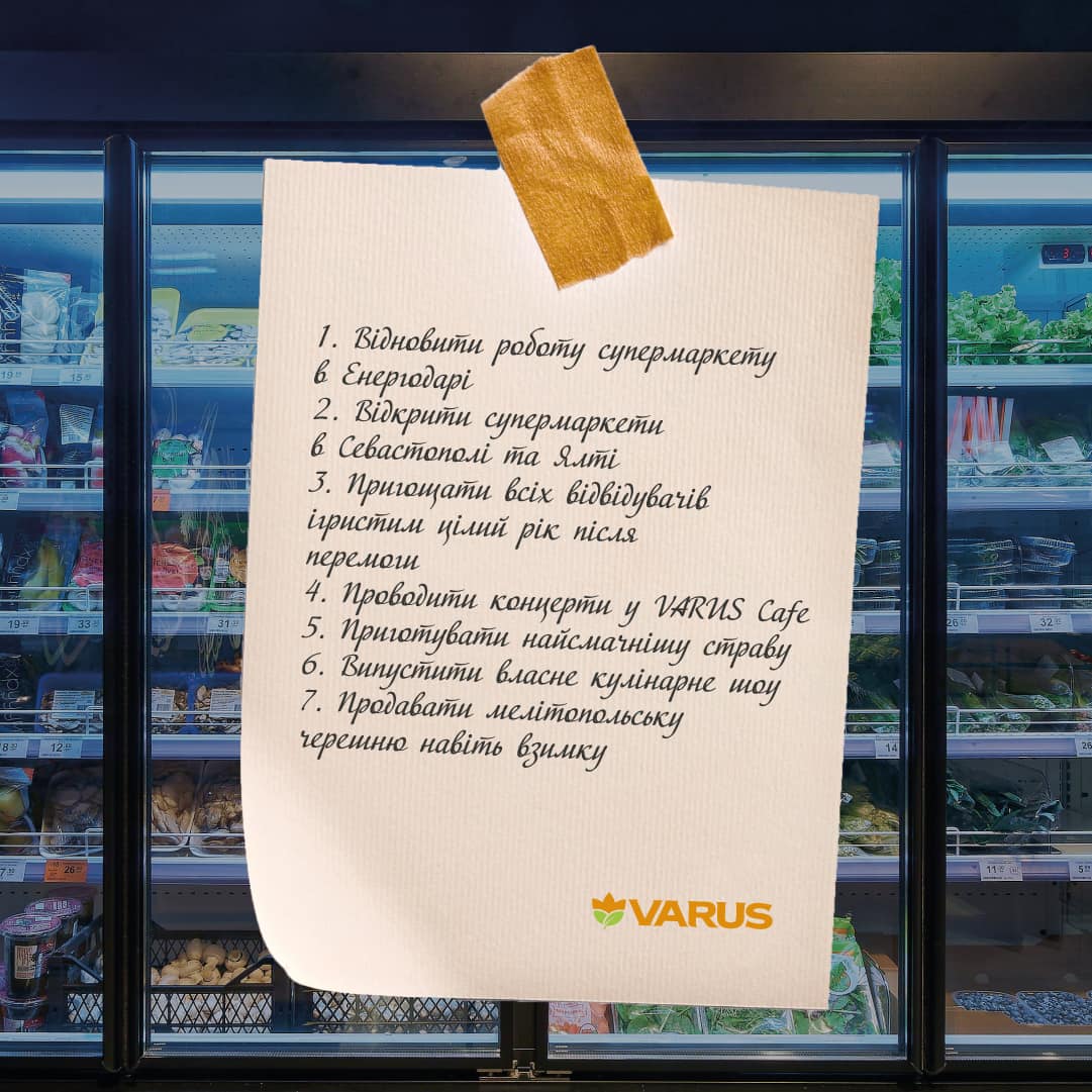 В Varus желают возобновить работу супермаркета в Энергодаре, открыться в Севастополе и Ялте, выпустить кулинарное шоу и устраивать концерты в Varus Cafe.