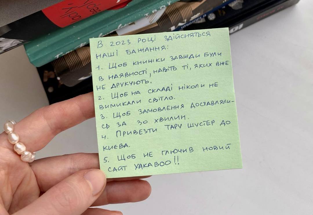 В офисе Yakaboo тоже нашли тайные аффирмации, но более похожие на крик души маркетологов. Там им чтобы сайт Yakaboo не глючил, и чтобы книги были в наличии, даже те, которые уже не печатают, и чтобы заказы доставляли за 30 минут. Если бы так все было, все хотят.