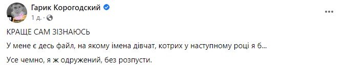 Самый активный в Facebook украинский девелопер Гарик Корогодский в привычном для него сексистском стиле тоже поделился комментарием о собственном списке желаний. Конечно же, в шутливом форме. Правда потом или передумал, или стыдно стало, и написал другой пост о “пресловутой бумажке”, с моралью. Почитать можно тут.