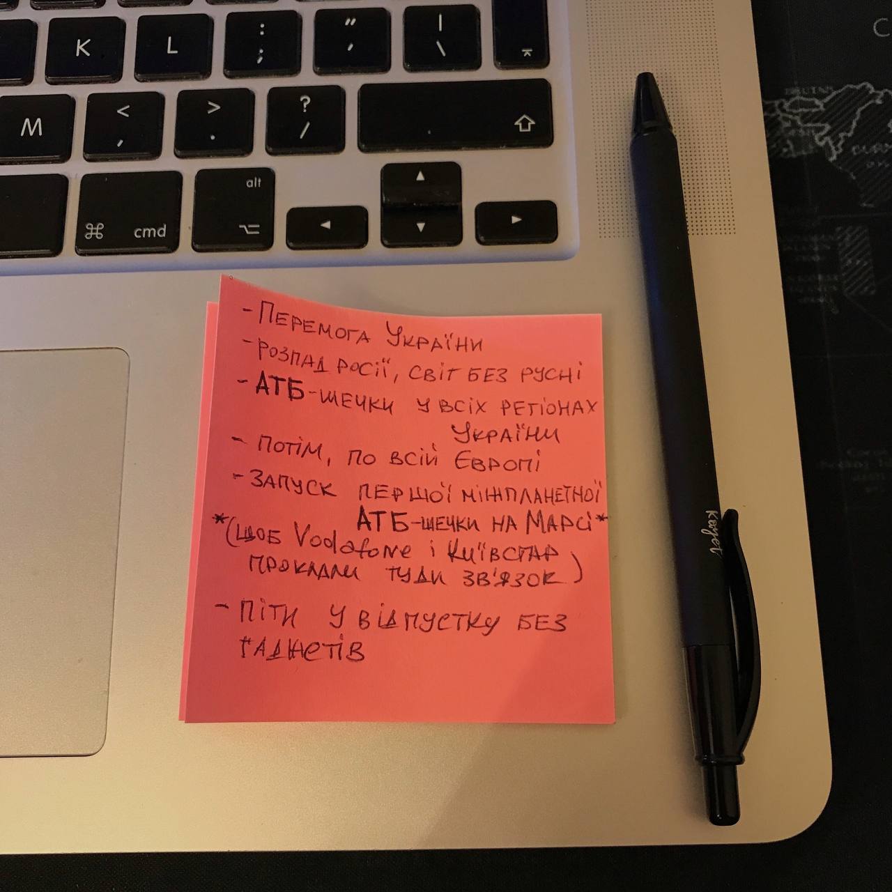 В сети магазинов АТБ желания просты: распад россии, АТБ-шечки во всех регионах, затем по всей Европе, запуск первой межпланетной АТБ-шечки на Марсе и отпуск без гаджетов. Победа Украины – на первом месте в списке. Отпуск, кстати, уже после открытия магазина на Марсе.