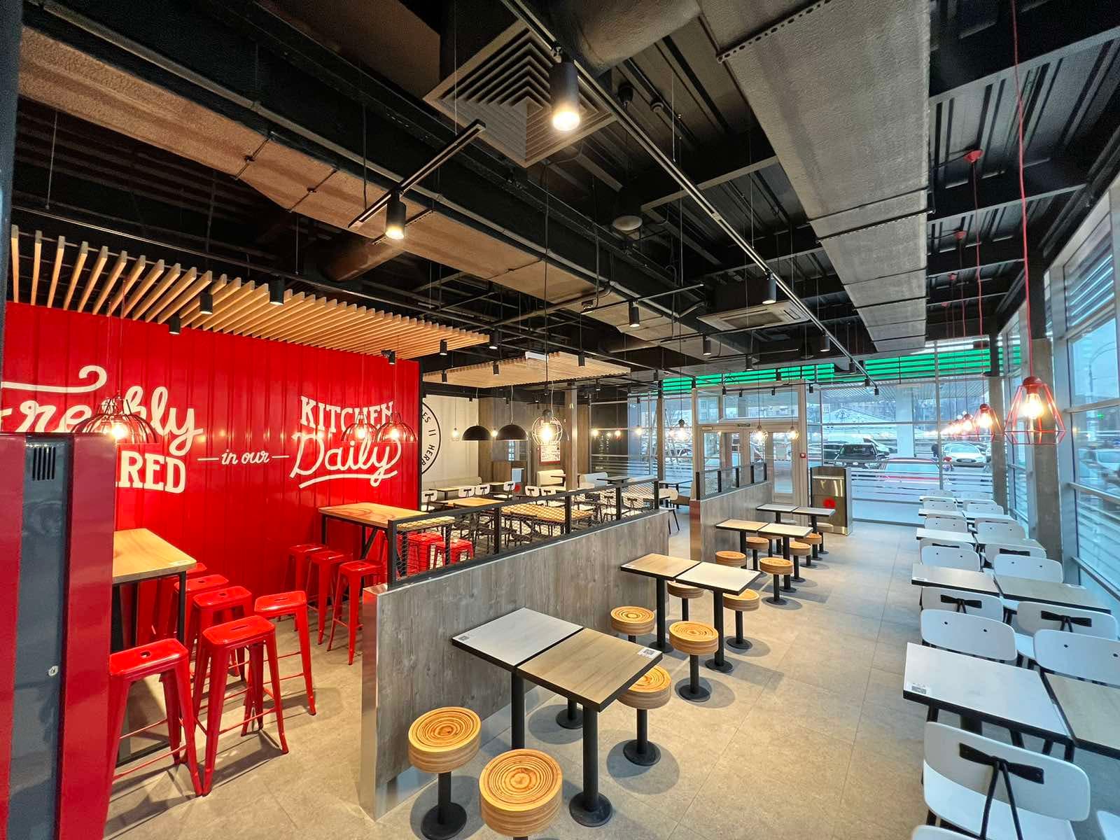 Как сообщила RAU пресс-служба сети, общая площадь зала составляет 189 кв. м. Интерьер заведения разрабатывала компания K2 Urban. Ресторан рассчитан на 134 посадочных места. Гостей обслуживают как в зале ресторана, так и на линии KFC Драйв. Кроме того, заведение работает на доставку. График работы KFC на Севастопольской – с 8:00 до 21:00.
