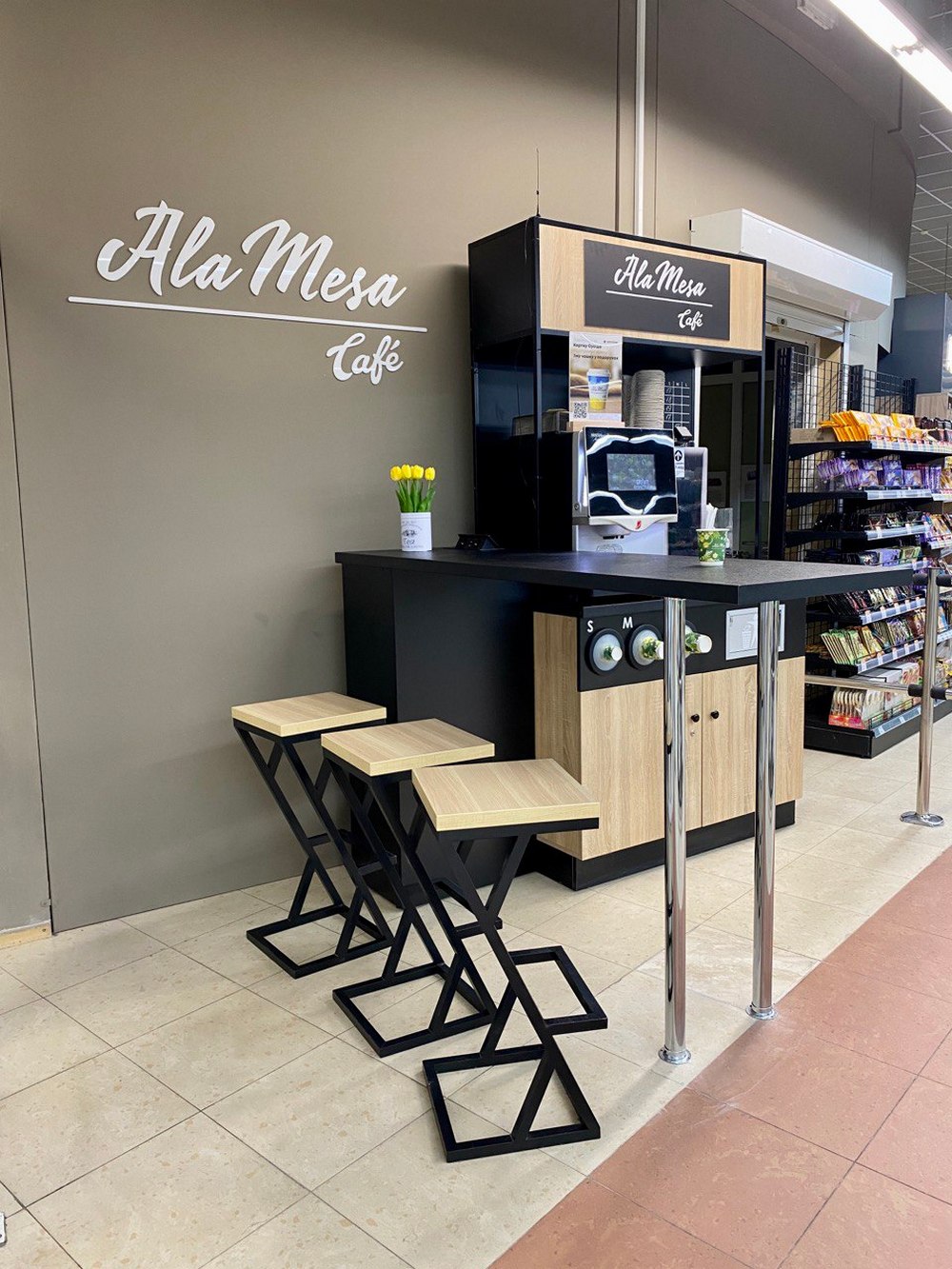 Своим гостям универсам предлагает вкусный кофе из AlaMesa cafe с удобной зоной для отдыха.