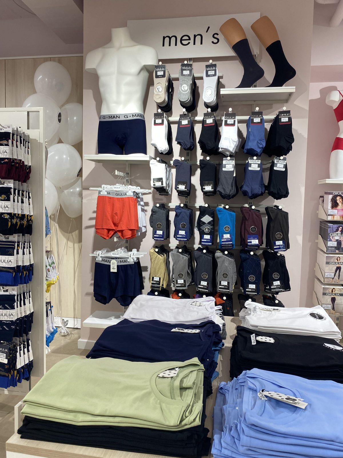 На площади 86 кв. м в ТРЦ Gulliver у нас появились четко выделенные зоны для мужчин и детей, а также зона спорта с бесшовным бельем. Кроме того, мы смогли лучше представить наш огромнейший ассортимент носков. Мы бы хотели в более крупных форматах в будущем еще больше уделить этой группе внимания, так как возможности фабрики безграничны.