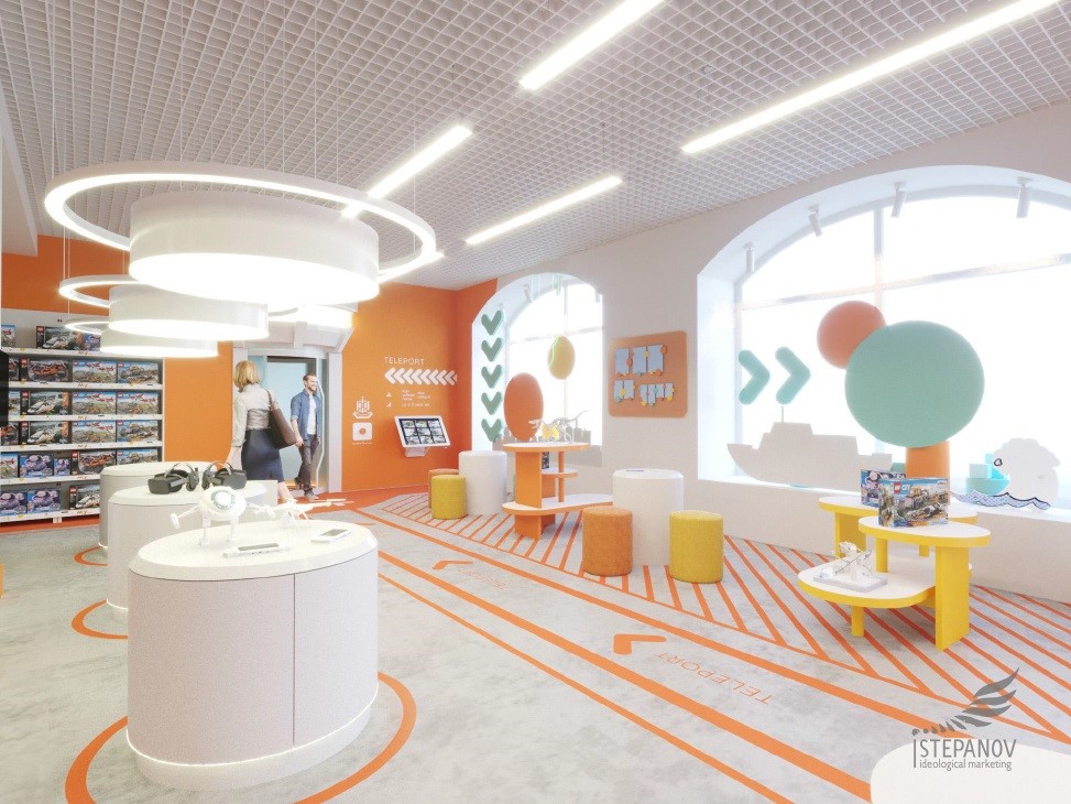 В ходе проекта были собраны бенчмарки успешных мировых бизнес-моделей, выявлены глобальные и локальные тренды. Мы увидели новые зоны для изменений и после этого определили новое ядро потребителя, разработали его портрет. Как правило, все детские ритейлеры выбирают потребителем родителей. Мы же будем служить ребенку 3-8 лет, в поведенческом профиле: артист, разбышака и всезнайка. Отсюда новая категоризация, изменения в ассортиментной матрице и, как результат, новая навигация в пространстве.