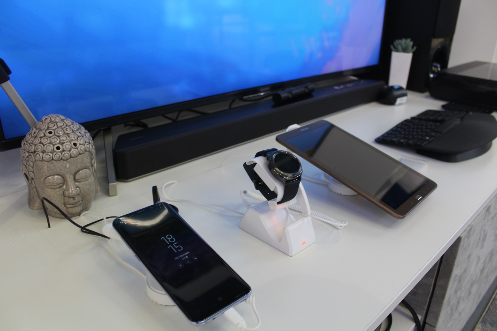 Протестировать любой товар можно в расположенной рядом зоне Experience. Здесь же представлены все продукты, которые можно объединить в экосистему. Компания попыталась создать домашнюю атмосферу, установив удобный диван и кресла, расположившись в которых покупатель в комфортных условиях сможет потестить гаджеты.