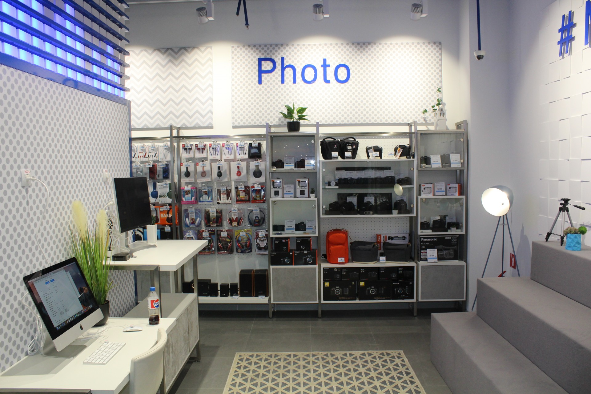 Вторая большая категория, на которой в MOYO делают особый акцент — фототехника. Изменения, произошедшие в зоне Photo, также призваны помочь профессиональным или начинающим фотографам протестировать технику. Для этого оборудована мини студия с декорациями и 3D-панелью, на которой лучше видны переливы света.