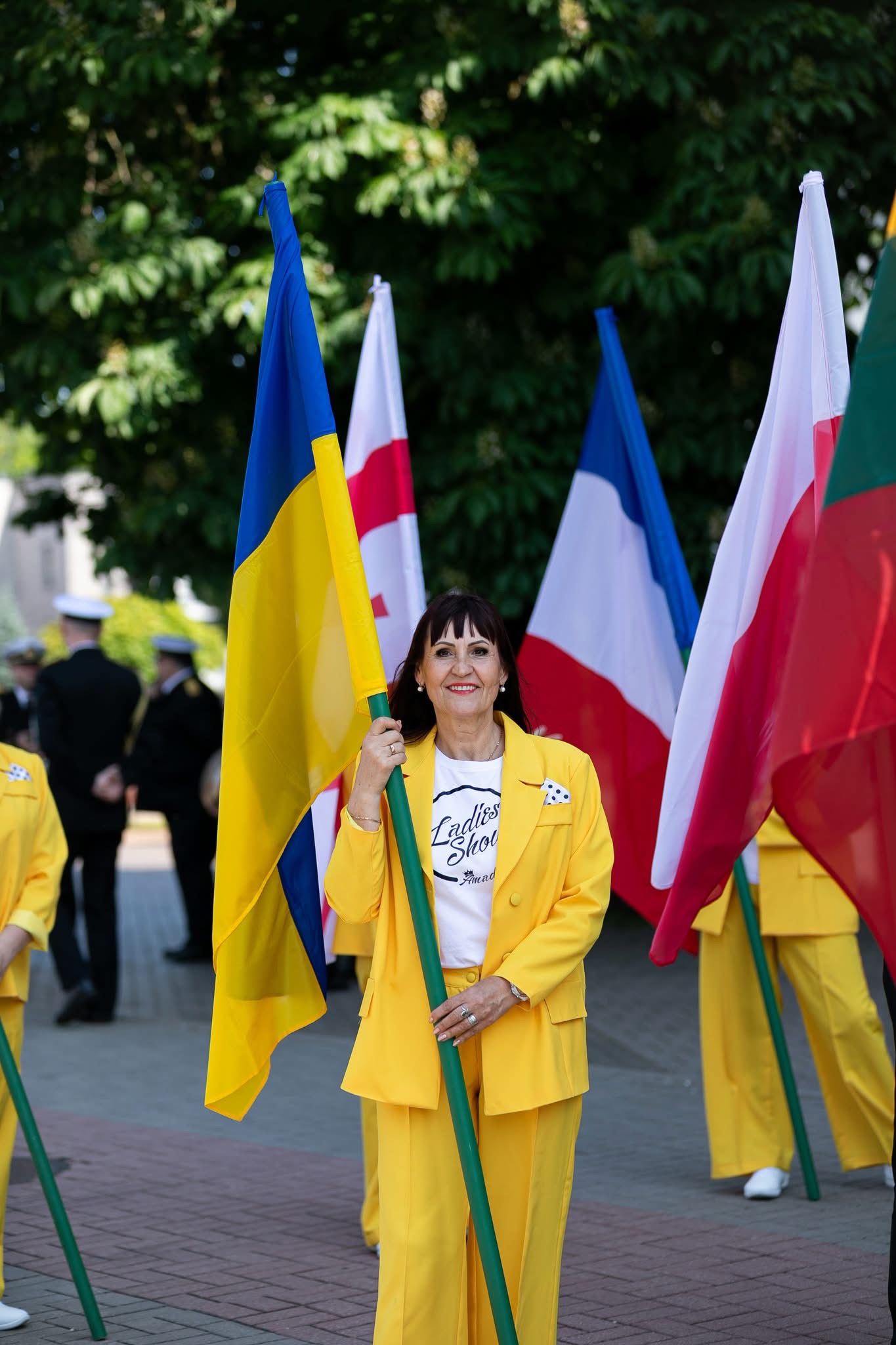 Праздничное мероприятие сопровождалось торжественным шествием с флагами, среди которых развевался сине-желтый флаг и продолжился концертом с участием местных коллективов.