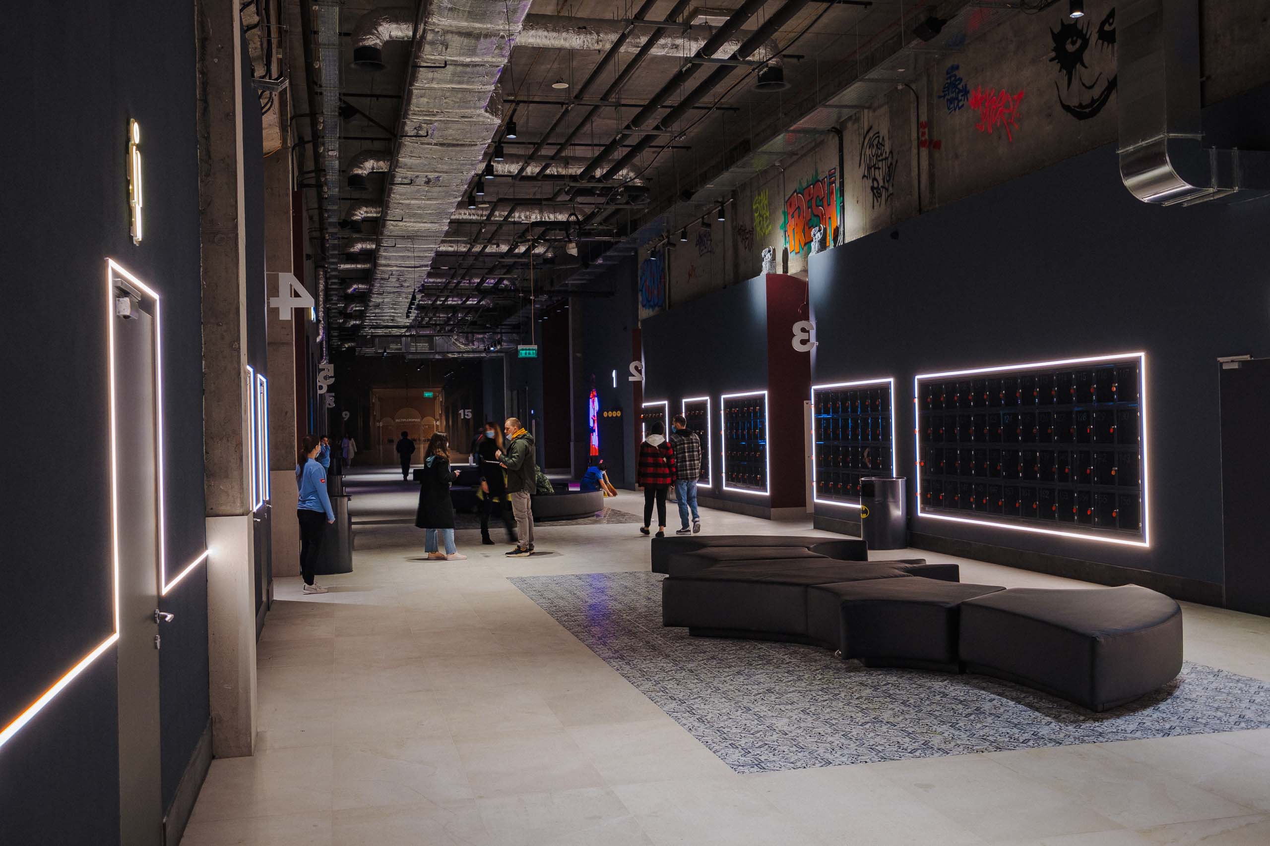 В ожидании сеанса кино зрителям предложены кресла, которые можно переставлять для удобства по своему усмотрению. Отдельно установлены несколько сотен камер хранения, так что в зал не обязательно идти со своими сумками, чтобы потом через них другие зрители спотыкались.