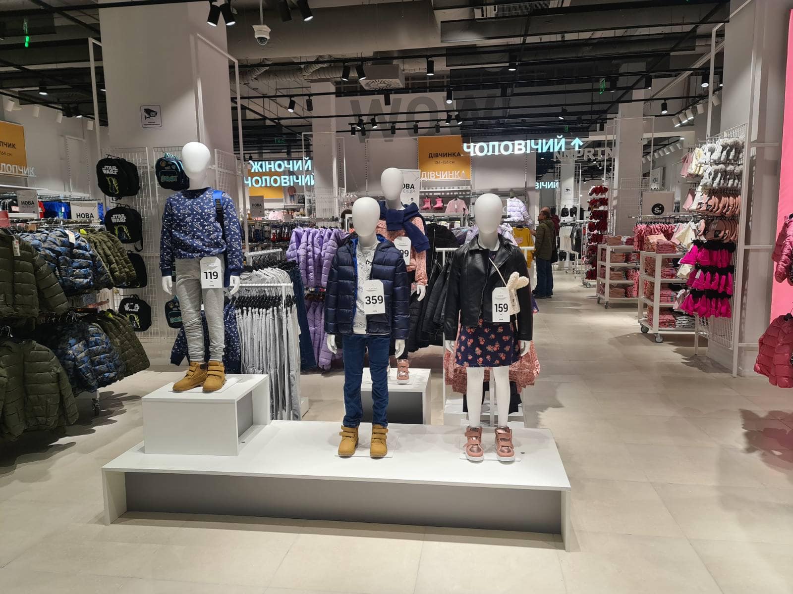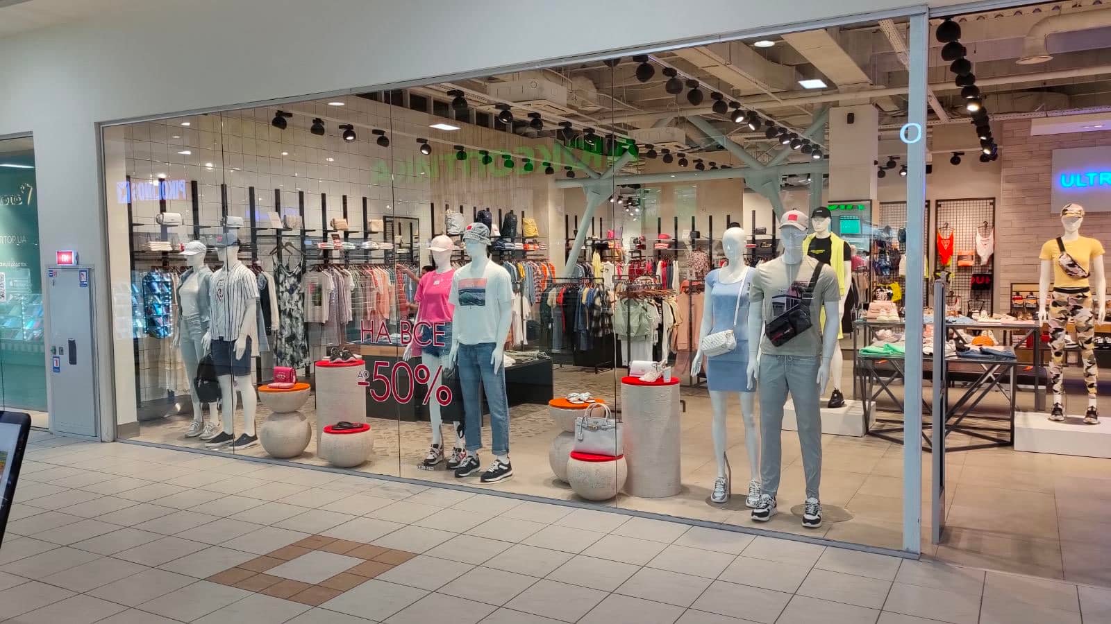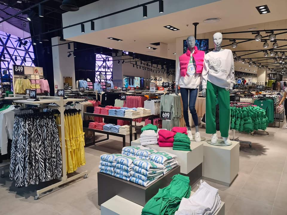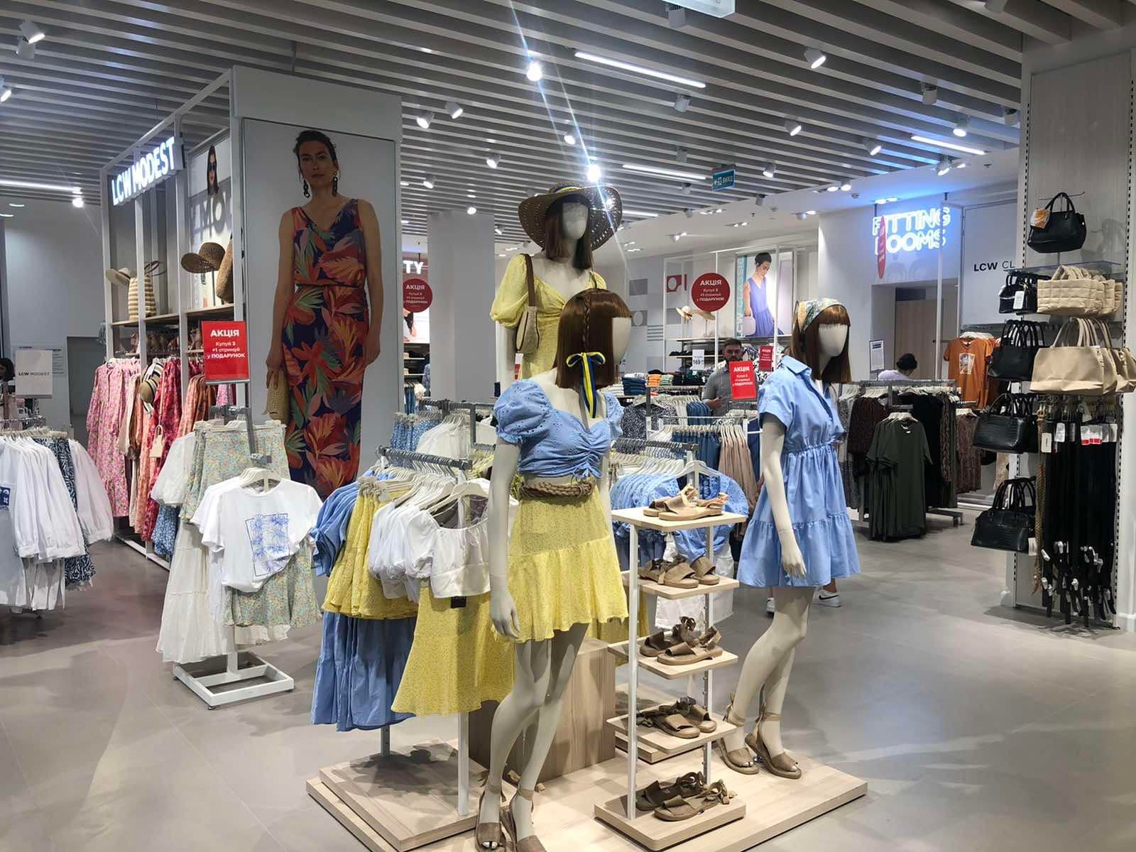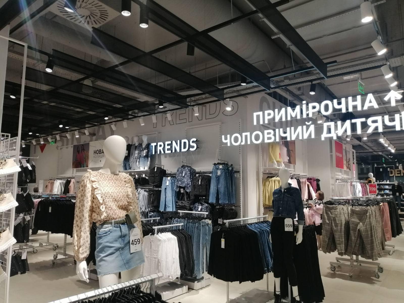 Эти магазины так же, как и в ТРЦ City Center, были исполнены в обновленном концепте с цветной навигацией, четким зонированием и со сфокусированным холодным освещением, что направляет внимание покупателей на стойки с одеждой.